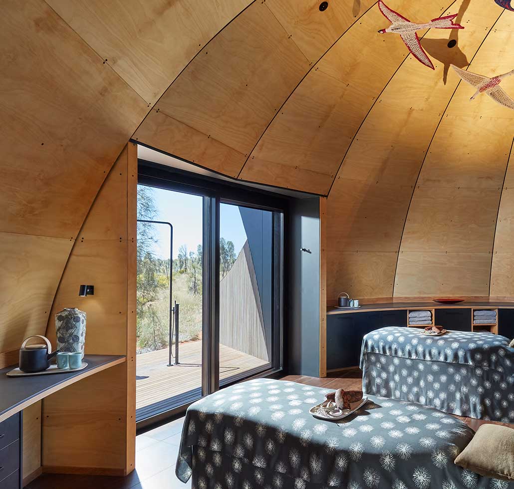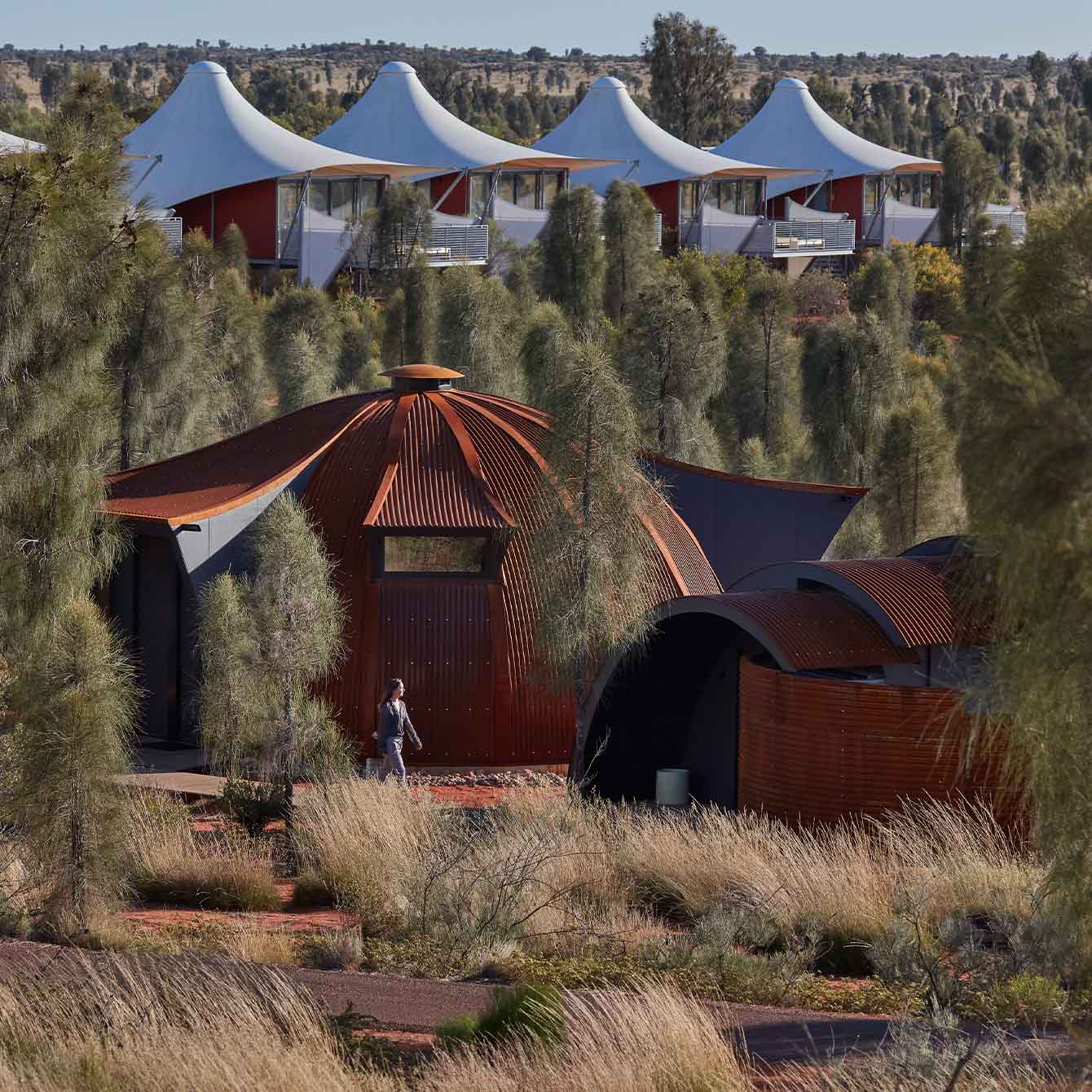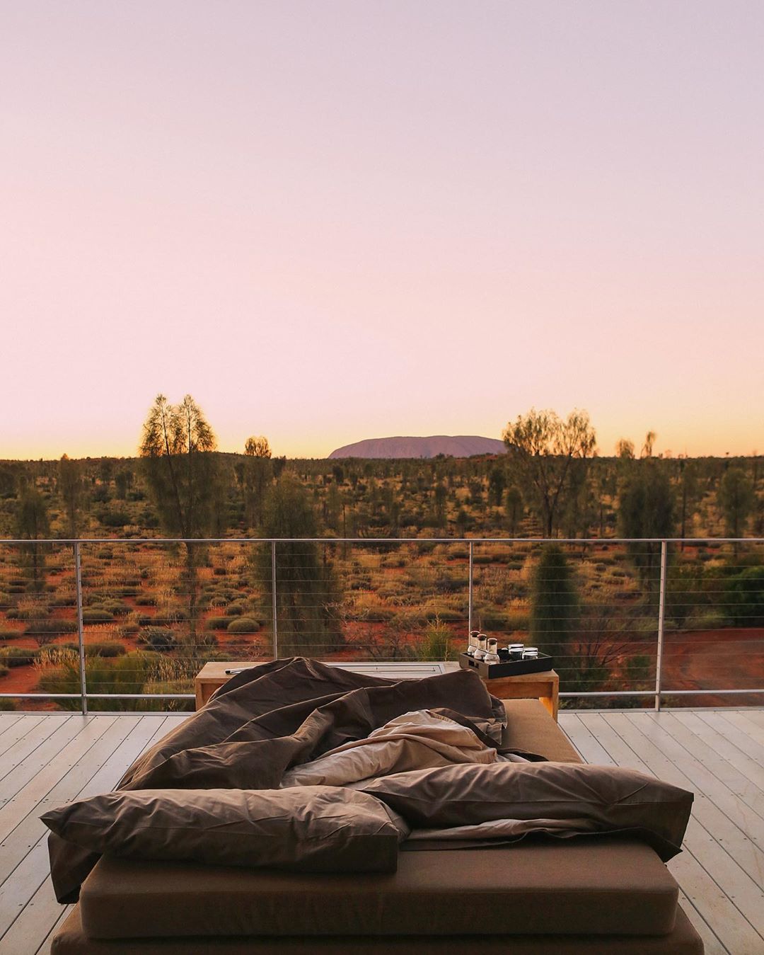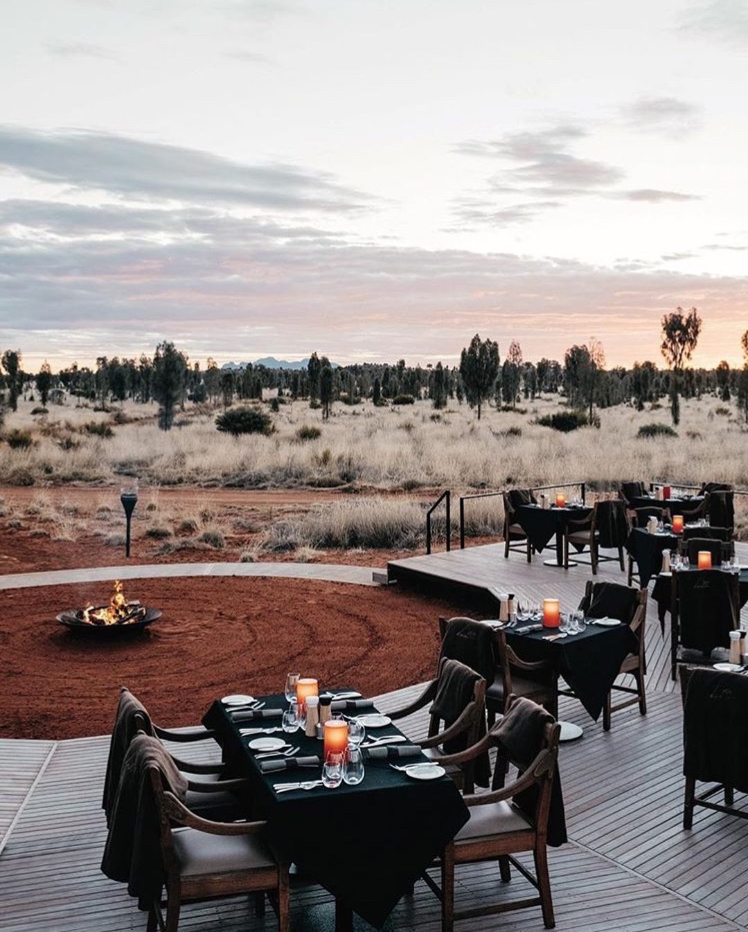 Com vista direta para Uluru (ou Ayers Rock - o segundo maior monólito do mundo, é o cenário onde as dunas são vermelho-ferrugem bem no centro da Austrália). O Longitude 131 é o acampamento de luxo mais famoso da Austrália. São apenas 15 cabanas, cada uma oferecendo conexão com a paisagem: as cabanas tem a frente de vidro e ficam ao redor de uma bela fogueira. Pra completar a experiência, um SPA completo espera os hóspedes para tratamentos de relaxamento e bem-estar.