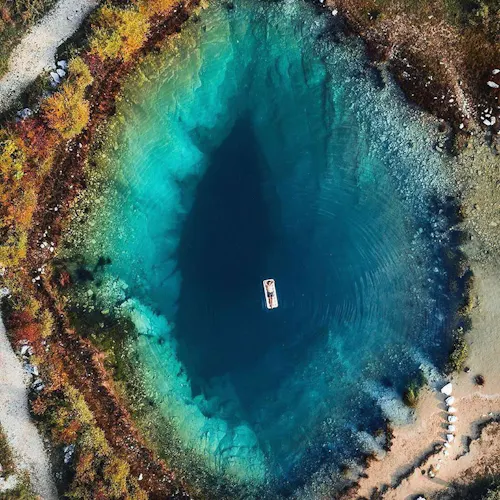 O visual do local é realmente impressionante. Com a água cristalina é praticamente uma piscina que esconde uma caverna que parece um olho no ar - incrivelmente belo. Quem quiser se aventurar ainda mais, é possível mergulhar com empresas especializadas nesse passeio mas é bom ressaltar que apesar do aquecimento das roupas de mergulho, a água é gelada: cerca de 8 ° C em algumas épocas, o que pode limitar um pouco a prática. Quem desce consegue ver impressionantes corredores rasos e estreitos e que vão mudando sua profundidade até um ponto de subida - o curso mais profundo da caverna acontece em espiral descendo verticalmente. A cor da rocha em alguns pontos é branca, de forma que a caverna é percebida como muito espaçosa em todos os níveis.