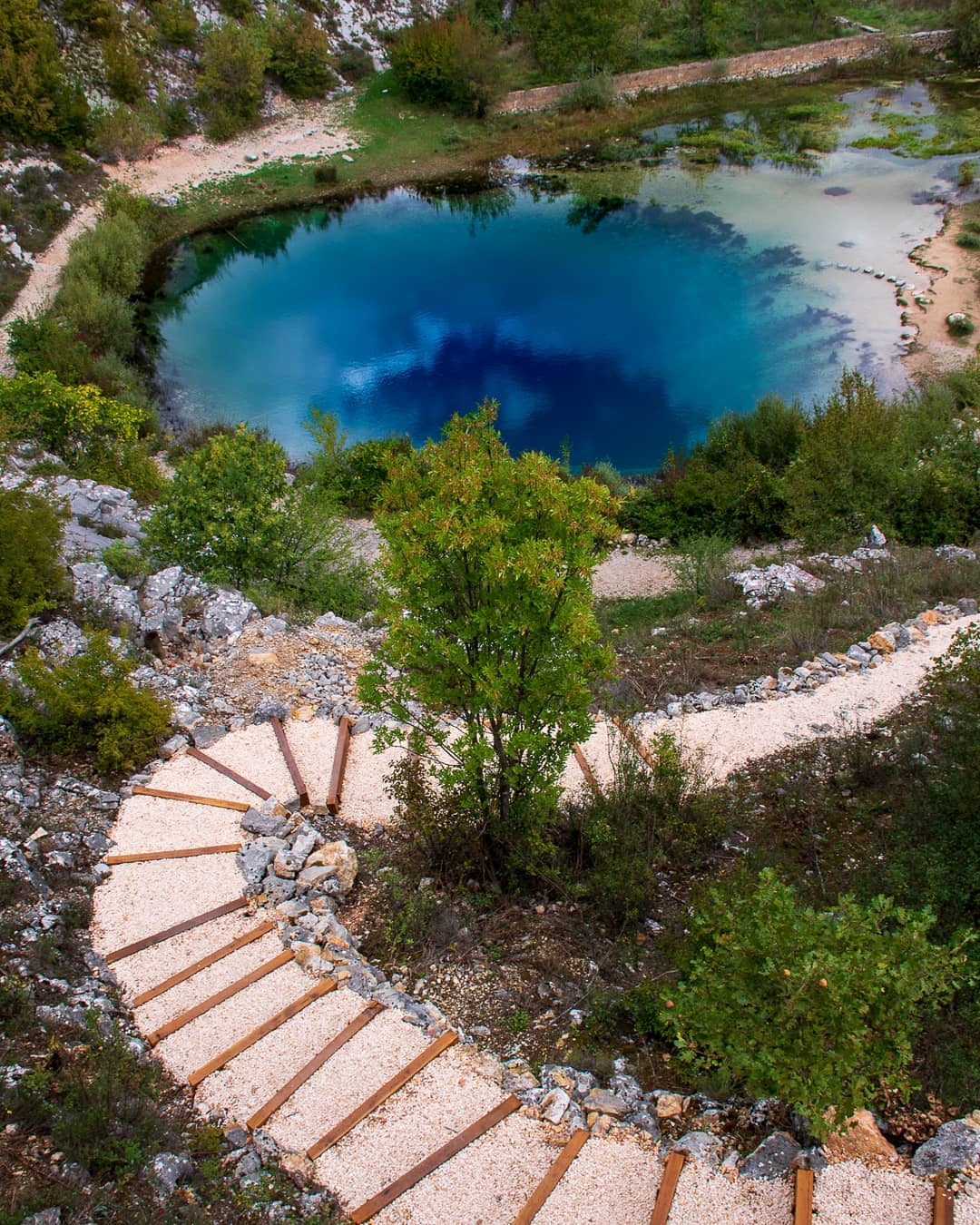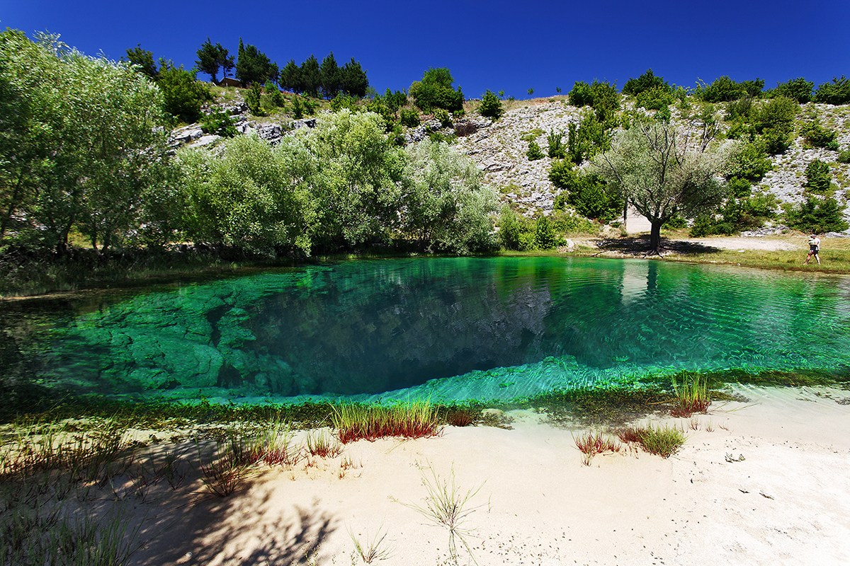 Perto de uma pequena vila está um reservatório de visual magnífico em tons de azul e verde, que é a origem do rio Cetina, a Glavas Cave é uma caverna imersa no Cetina Lake, que é a maior nascente do rio na Croácia: tem mais de 130 metros de profundidade.