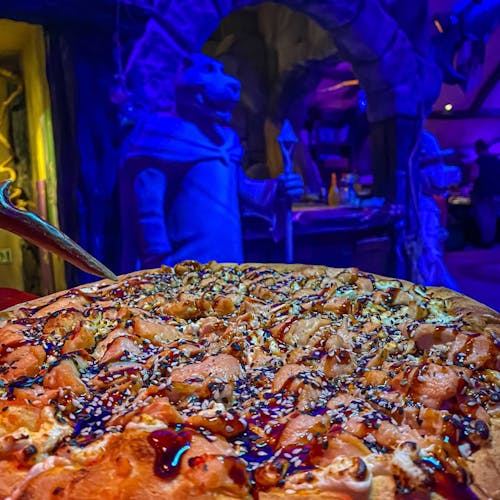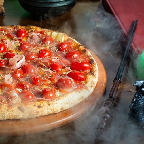 A casa funciona por sistema de rodízio e as pizzas são chamadas de discos de sabor. Elas são servidas por aprendizes da escola e duendes caracterizados e engraçados que interagem com todos no local. Para sinalizar na mesa se deseja ou não mais pizza, e quais você quer, há potinhos de poções coloridos onde um é para pizzas doces, outro salgadas e o outro é pra dizer que não quer ser servido, basta usá-los ao lado do prato.