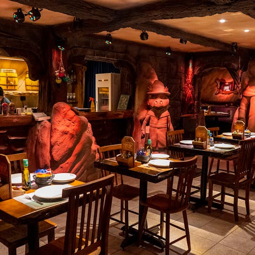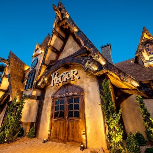 Inaugurada no final de 2019, o local vai muito além de uma pizzaria diferente: se tornou uma atração turística e gastronômica de Gramado, tudo por conta da experiência lúdica e cenários incríveis nos moldes dos parques da Disney. Isso mesmo: o projeto arquitetônico é da Thematic Gramado, que atua em Orlando, nos Estados Unidos, com projetos semelhantes nos parques.