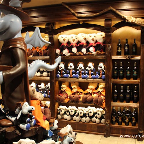 🛍️ Há uma lojinha de souvenirs com varinha mágica, diversas lembrancinhas pra levar pra casa e até vinhos de produção local