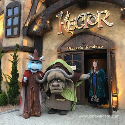 Já na chegada, tudo funciona como uma atração de parque mesmo. Em uma pequena sala, funcionários carismáticos usam uniformes especiais e há personagens temáticos que transitam por todo o ambiente interagindo com os visitantes, nesse momento são apresentados os personagens da Pizzaria Hector. É impossível não lembrar de Harry Potter! Apesar da coruja presente no local, da escola de magia e de muitas outras referências ao bruxo famoso – na pizzaria temática de Gramado o astro é o dragão Hector e seus amigos. Eles fazem parte da escola de magia. Após esse primeiro contato na chegada, os visitantes escutam sobre a história de Hector - um dragão que perdeu o poder de cuspir fogo e agora conta com a ajuda de amigos para fazer poções.