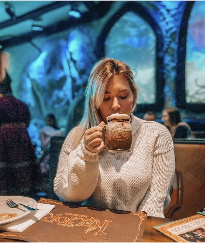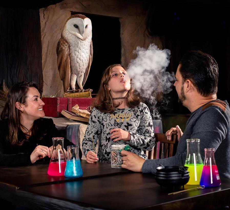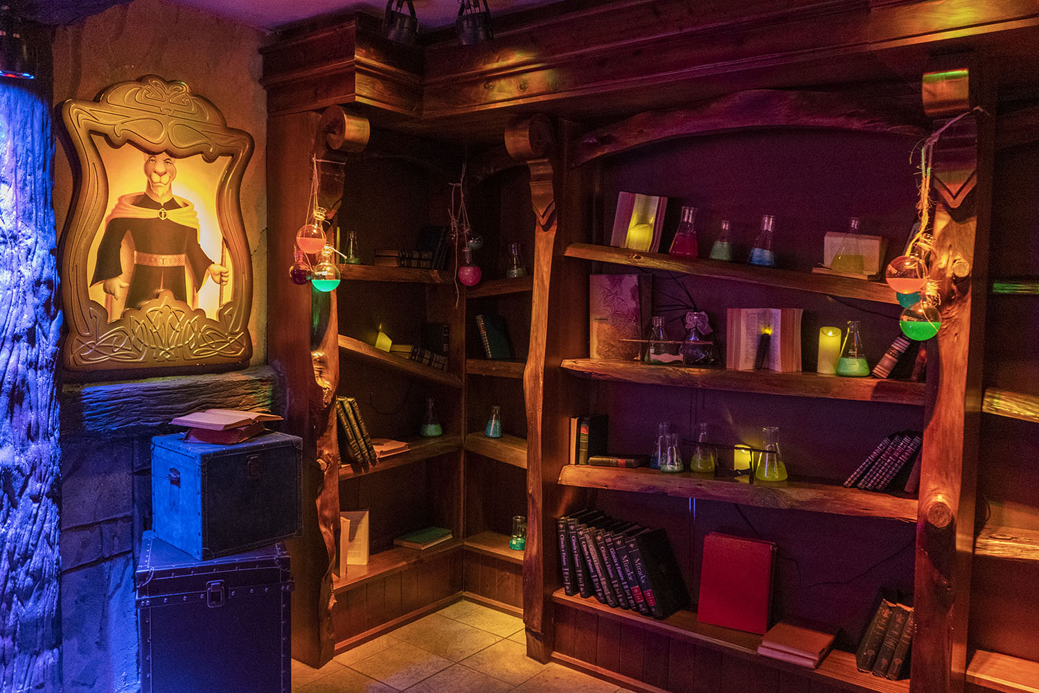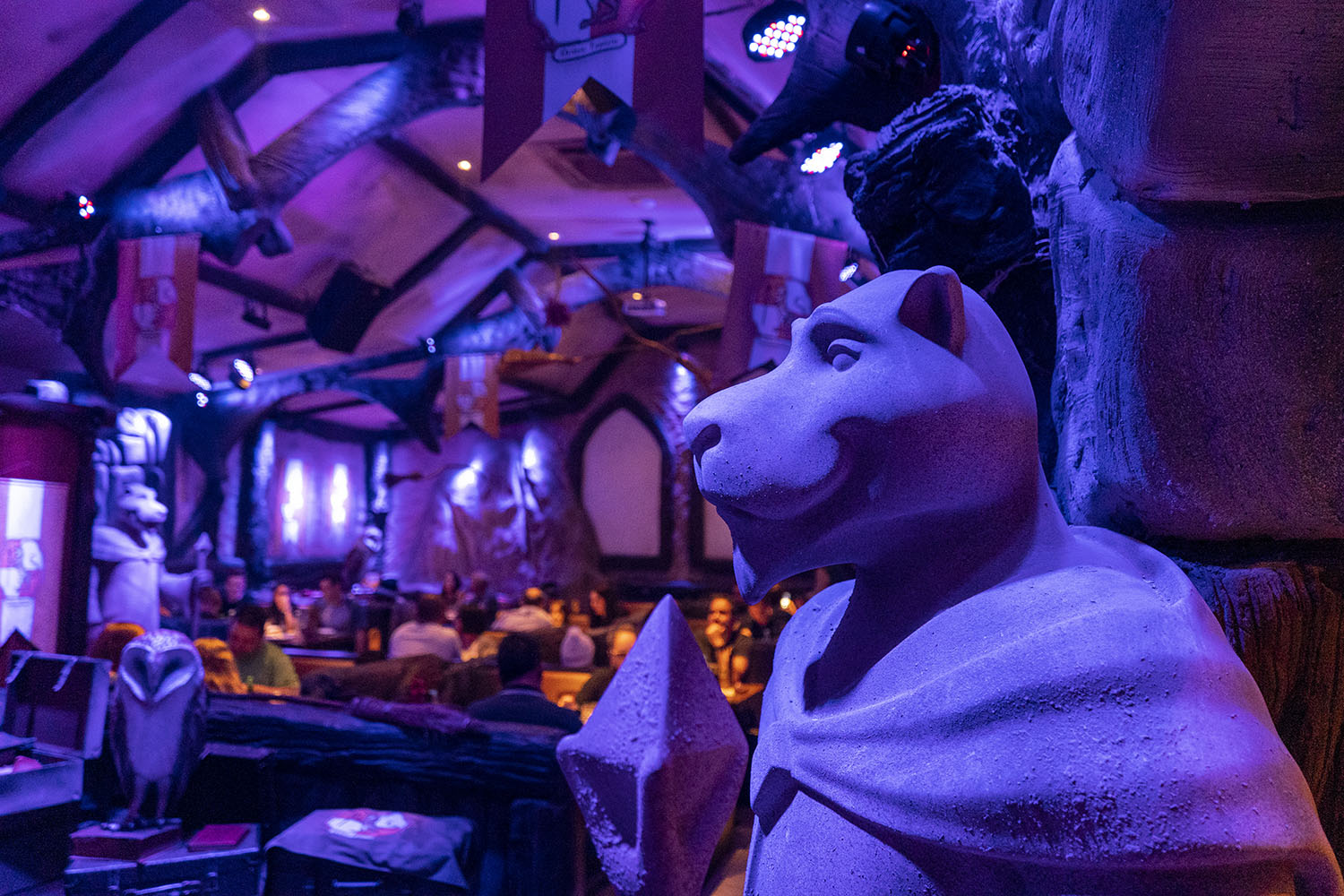 O ambiente todo é decorado com livros de feitiços, varinhas e vassouras, o local é dividido por ambientes entre o primeiro e segundo andar. Há ainda fumaças e luzes coloridas que mudam conforme a música que está tocando pra tornar o clima ainda mais especial.