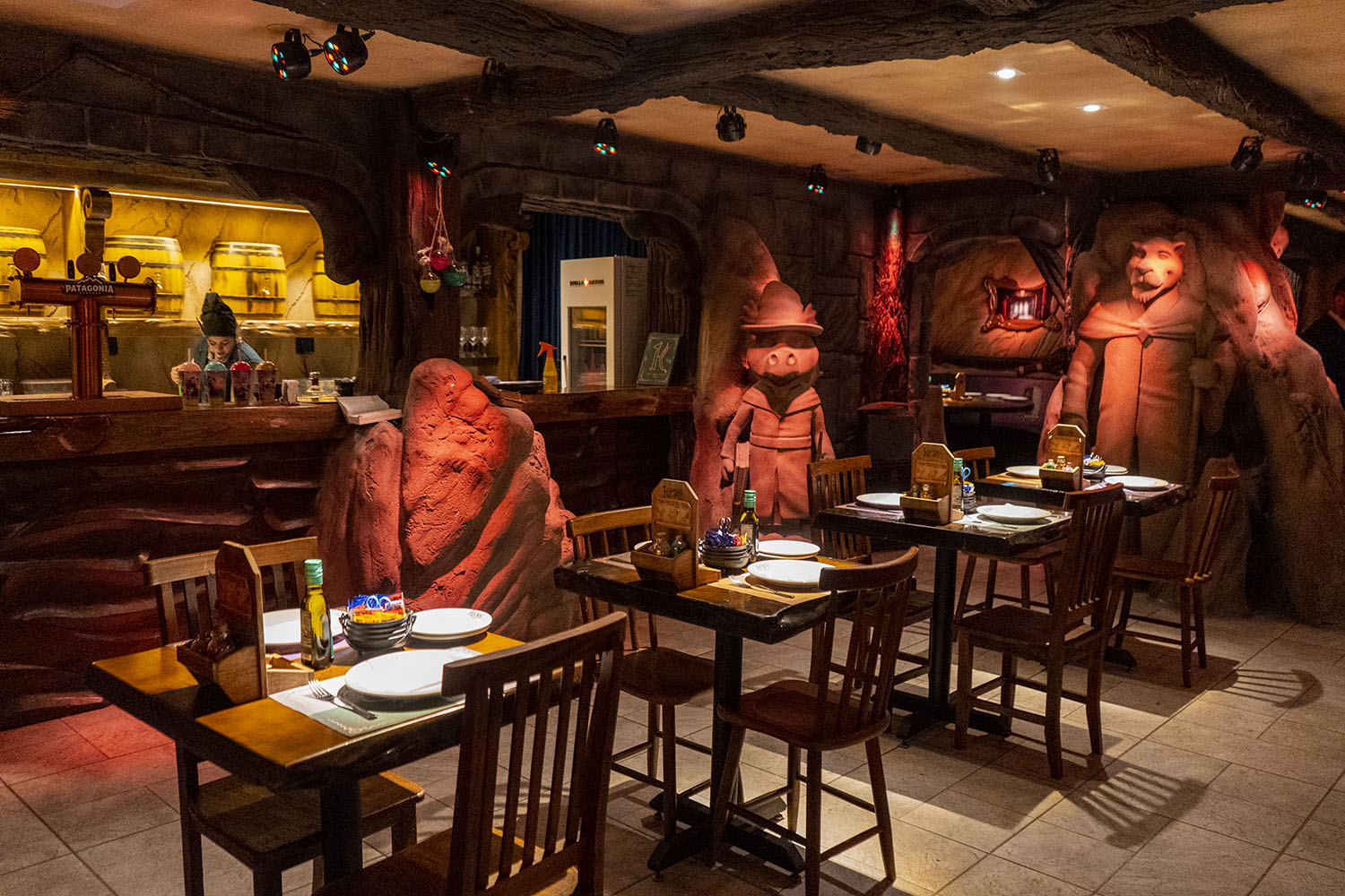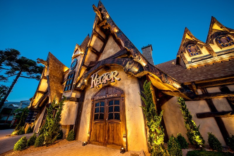 Inaugurada no final de 2019, o local vai muito além de uma pizzaria diferente: se tornou uma atração turística e gastronômica de Gramado, tudo por conta da experiência lúdica e cenários incríveis nos moldes dos parques da Disney. Isso mesmo: o projeto arquitetônico é da Thematic Gramado, que atua em Orlando, nos Estados Unidos, com projetos semelhantes nos parques.