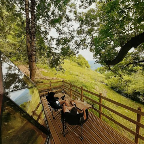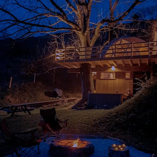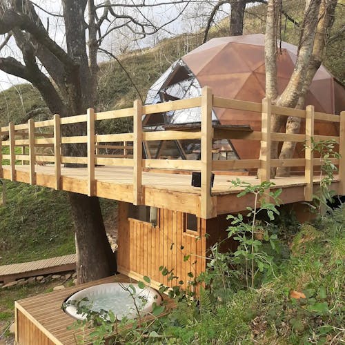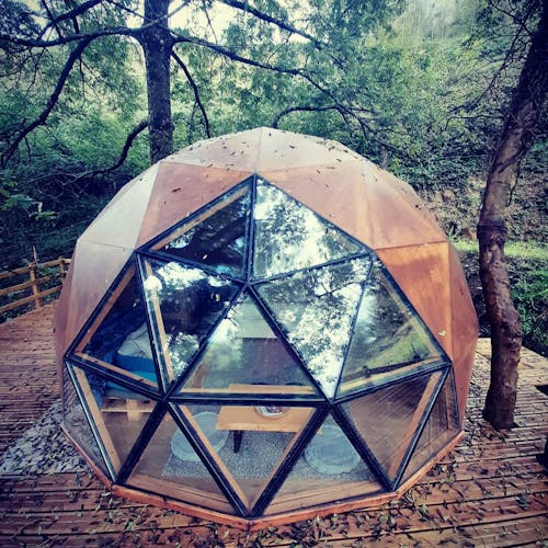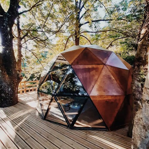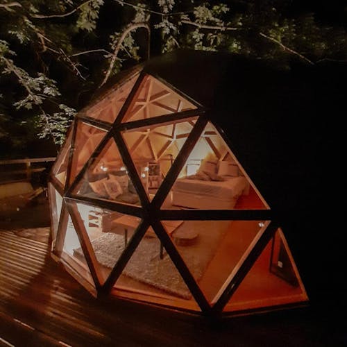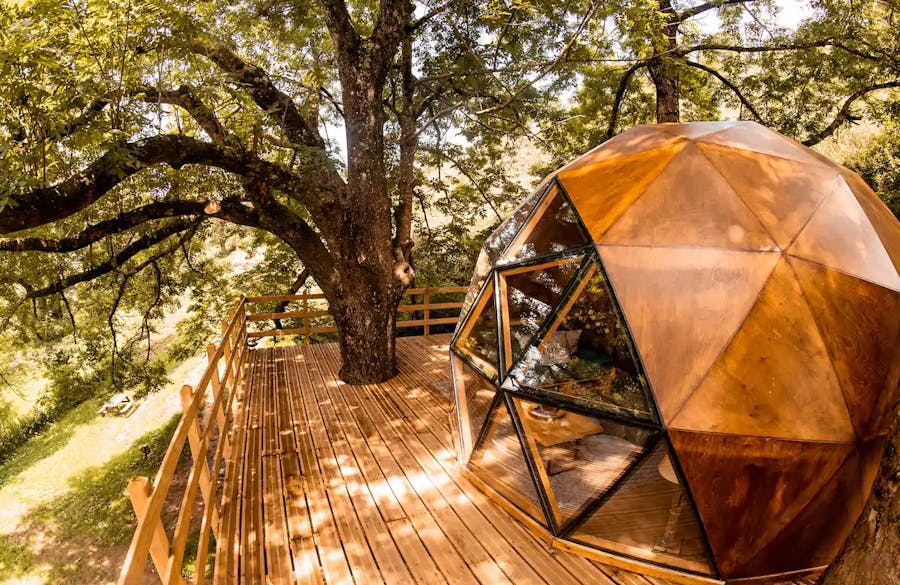 Como é se hospedar em um domo geodésico construído em um deck suspenso entre as árvores