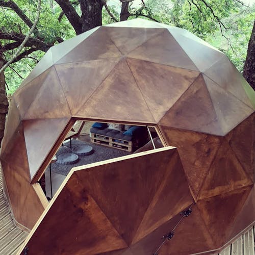 Uma cúpula geodésica é construída com base na união de triângulos, que por sua vez formam pentágonos e hexágonos - mais uma hospedagem diferente pra lista.