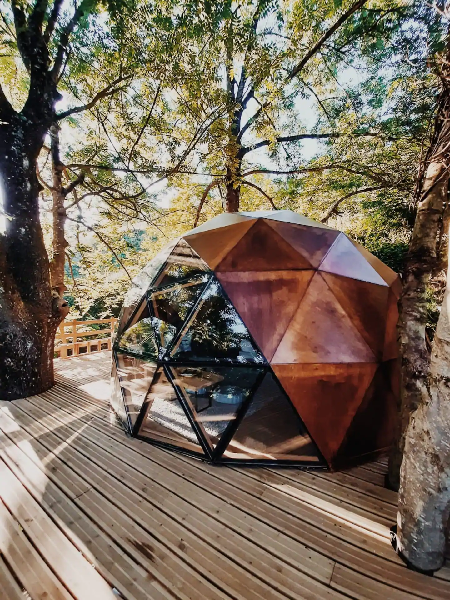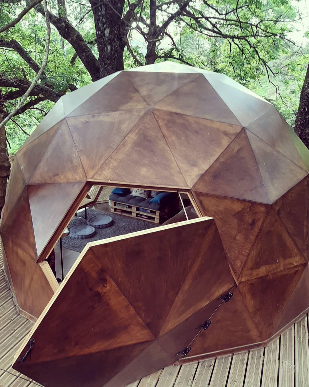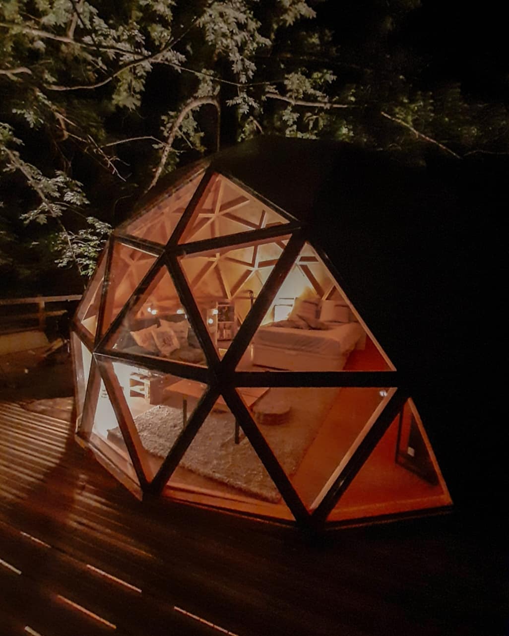 Como é se hospedar em um domo geodésico construído em um deck suspenso entre as árvores