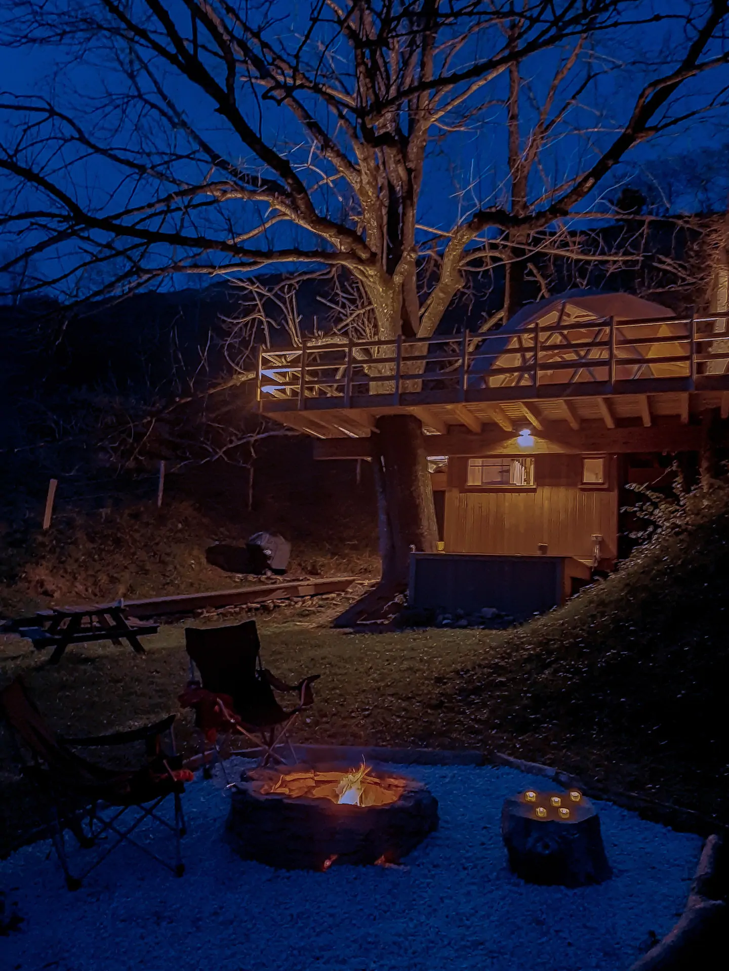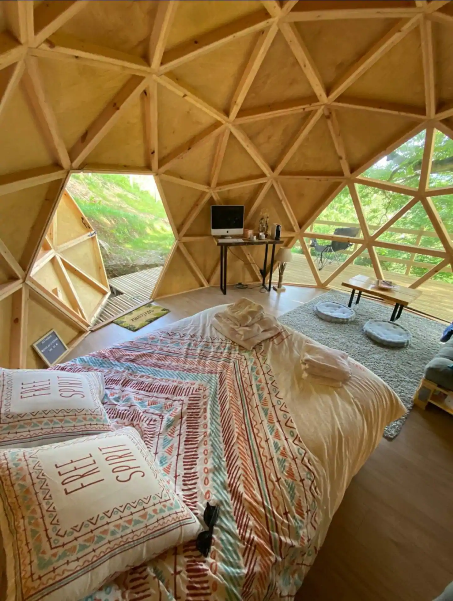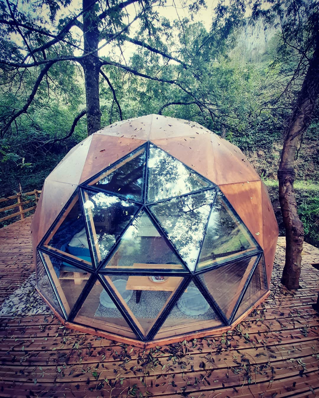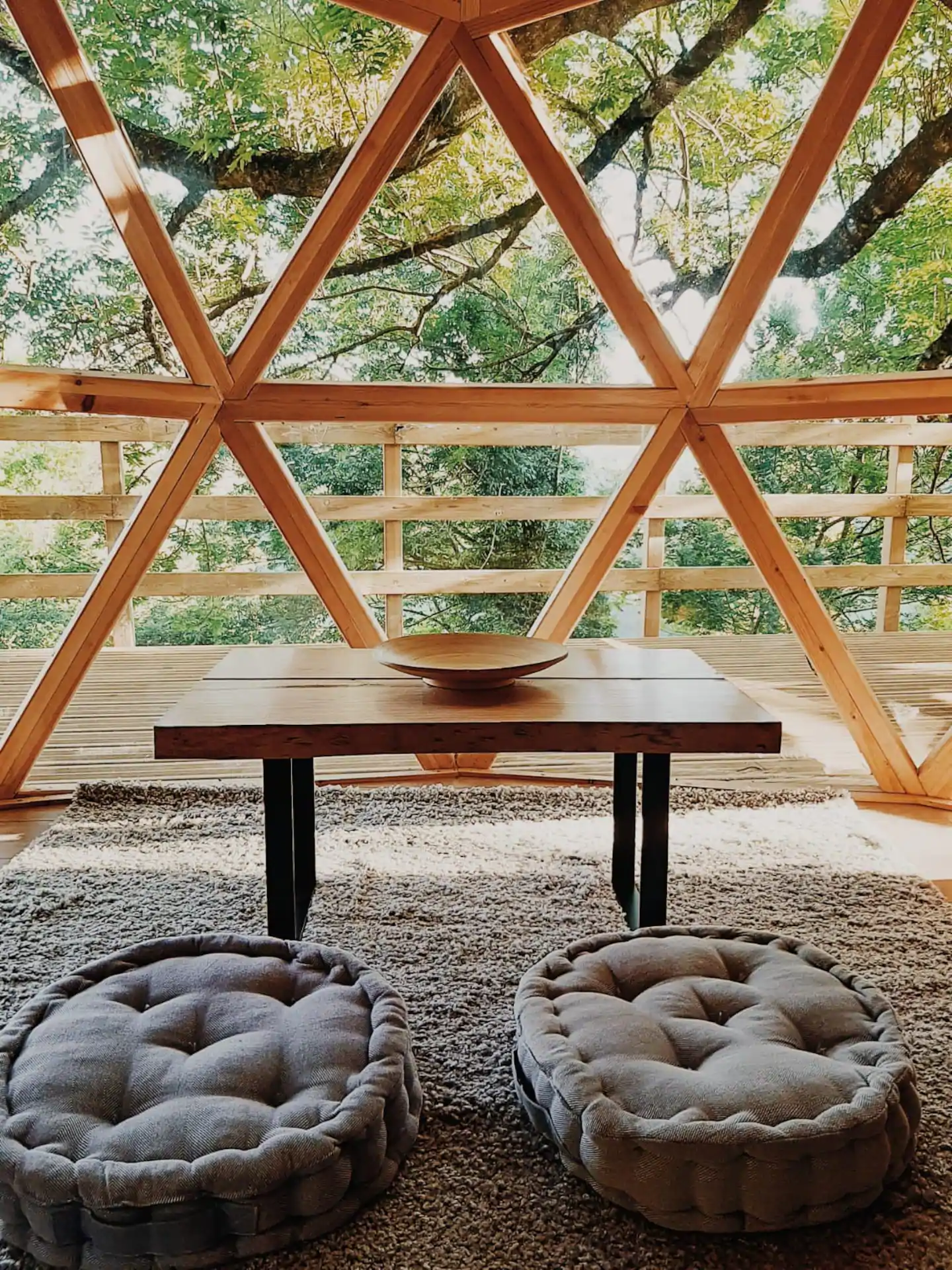 Como é se hospedar em um domo geodésico construído em um deck suspenso entre as árvores