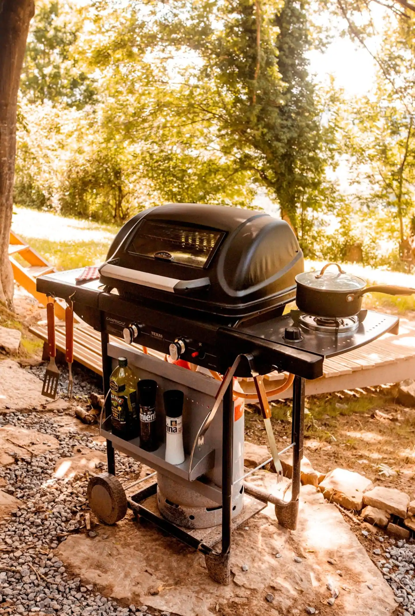 - 🍖 Jardim com churrasqueira a gás e mesa de piquenique
