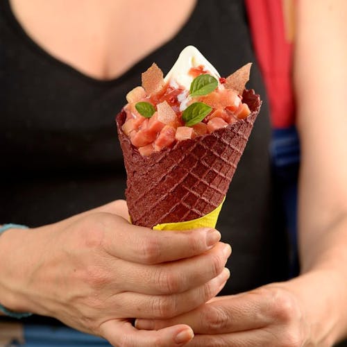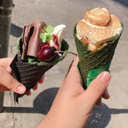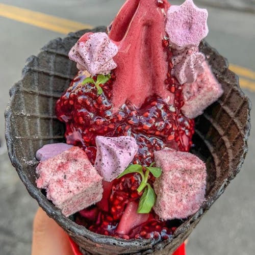 Agora, se os hot's já são uma loucura, prepare-se para ver opções inusitadas nas sobremesas: os famosos sorvetes coloridos e com misturas impensáveis da casa. Totalmente instagramáveis, são lindos, coloridos e cheios de toppings - além de deliciosos. Preciso repetir que é tudo sem conservante e artesanal? Os cascões coloridos são feitos com corantes naturais, como cacau, clorofila e carvão ativado!