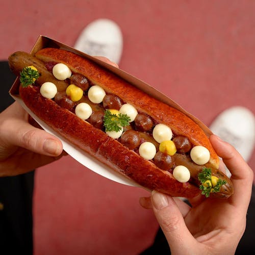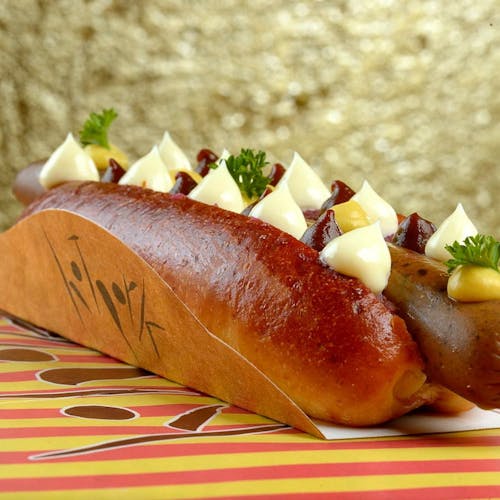 Na versão clássica: Pão: feito de batata artesanal super macio, dourado e brilhante Picles: cebola roxa e pepino caipira curtidos. Também artesanal. Salsicha: artesanal e feita com carne suína de verdade, sem qualquer conservante Ketchup: artesanal, de maçã e sem conservantes Maionese: de limão, artesanal e sem conservantes Mostarda: com tucupi, e claro, artesanal e sem os mesmos conservantes que você já sabe.