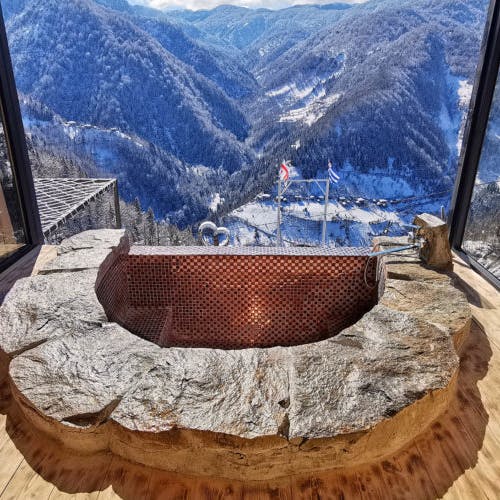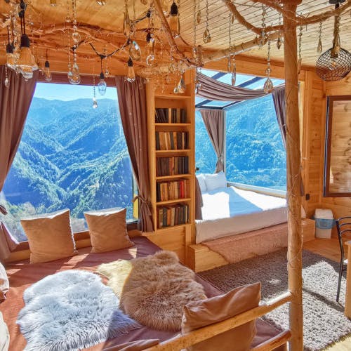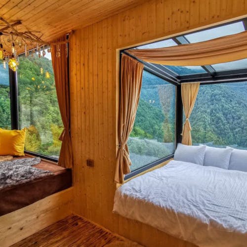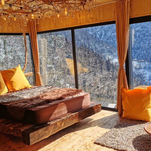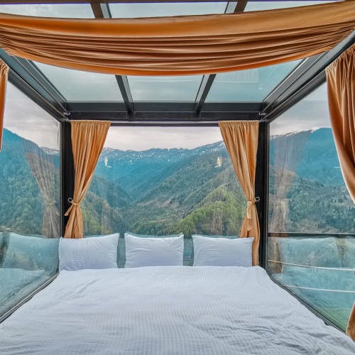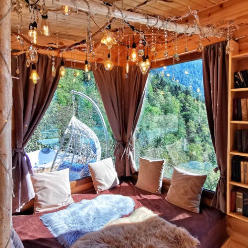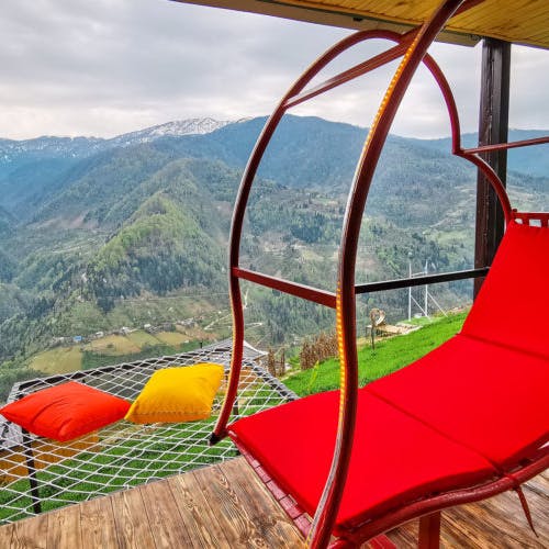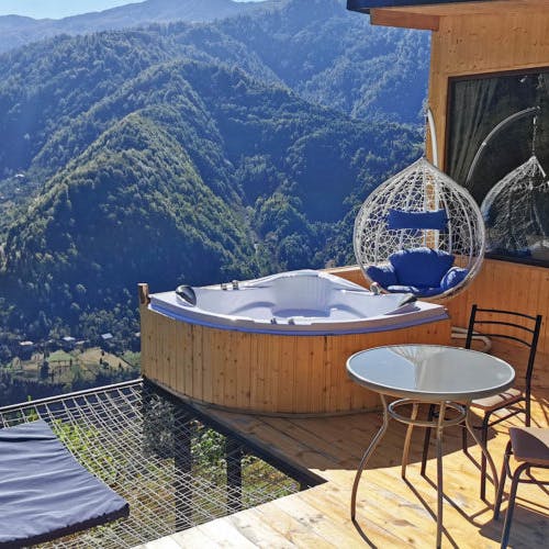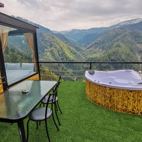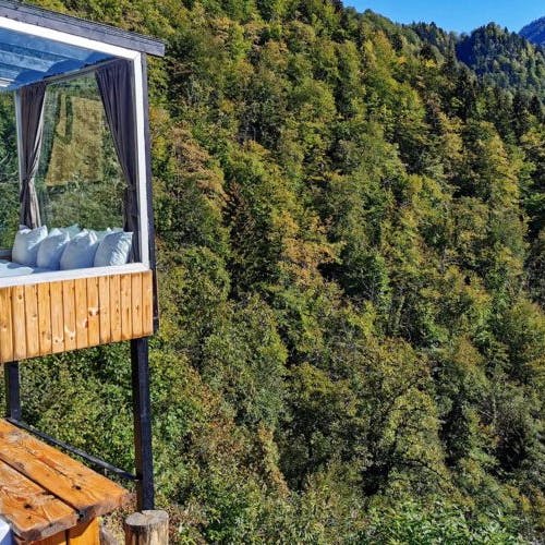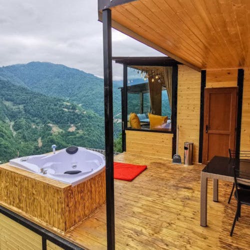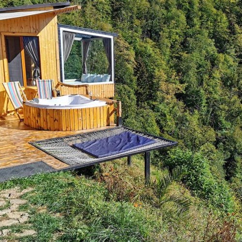 Um projeto inovador na área do turismo onde as acomodações são cabanas boutique com diferentes designs projetados pelos próprios idealizadores do local. Os quartos são de vidro na encosta da montanha com bela vista panorâmica, jacuzzi e rede suspensa na varanda. As casas estão localizadas a 850 metros de altura na pitoresca vila de Merisi, a 50 km de Batumi. Além do um clima gostoso da montanha, também há águas minerais ao redor, levando a experiência à um nível que mistura hospedagem criativa com bem-estar. Há também um enorme balanço de 6 metros em uma encosta íngreme que se tornou outra marca registrada do hotel.
