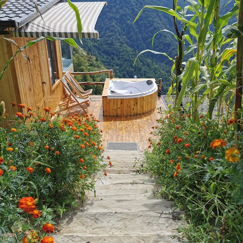 Ineza/Eliko: 1 quarto, 2 camas. 24 m² + varanda 20 m². Quarto de vidro, ar condicionado, rede suspensa, banheiro privado, jacuzzi ao ar livre, wi-fi, área privada para piqueniques, grande varanda. 👥. Até 4 hóspedes