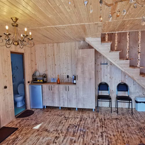 Irina: 2 andares, 2 quartos. 50 m² + varanda 12 m². Quarto de vidro no segundo andar, quarto com janelas panorâmicas no primeiro andar. Piscina externa de pedras, ar condicionado, banheiro privado, lareira, wi-fi, área privada para piqueniques, grande varanda no segundo andar, rede suspensa. 👥. Até 6 pessoas