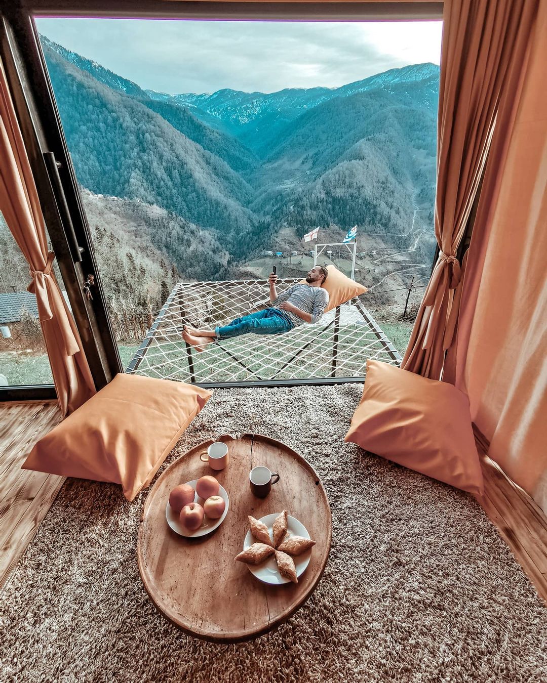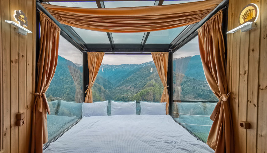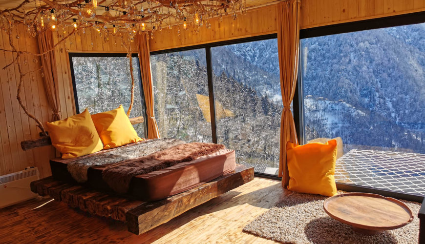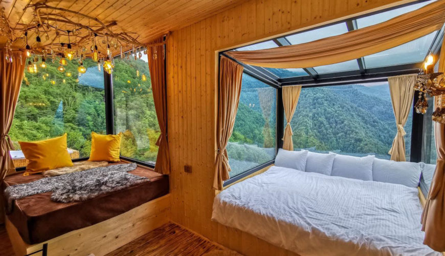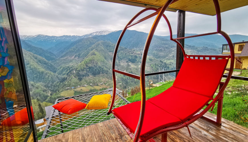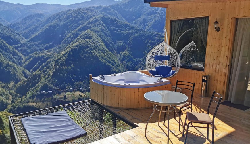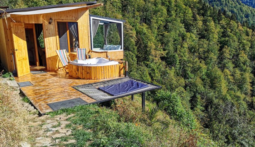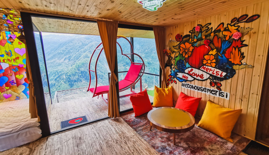 Um projeto inovador na área do turismo onde as acomodações são cabanas boutique com diferentes designs projetados pelos próprios idealizadores do local. Os quartos são de vidro na encosta da montanha com bela vista panorâmica, jacuzzi e rede suspensa na varanda. As casas estão localizadas a 850 metros de altura na pitoresca vila de Merisi, a 50 km de Batumi. Além do um clima gostoso da montanha, também há águas minerais ao redor, levando a experiência à um nível que mistura hospedagem criativa com bem-estar. Há também um enorme balanço de 6 metros em uma encosta íngreme que se tornou outra marca registrada do hotel.
