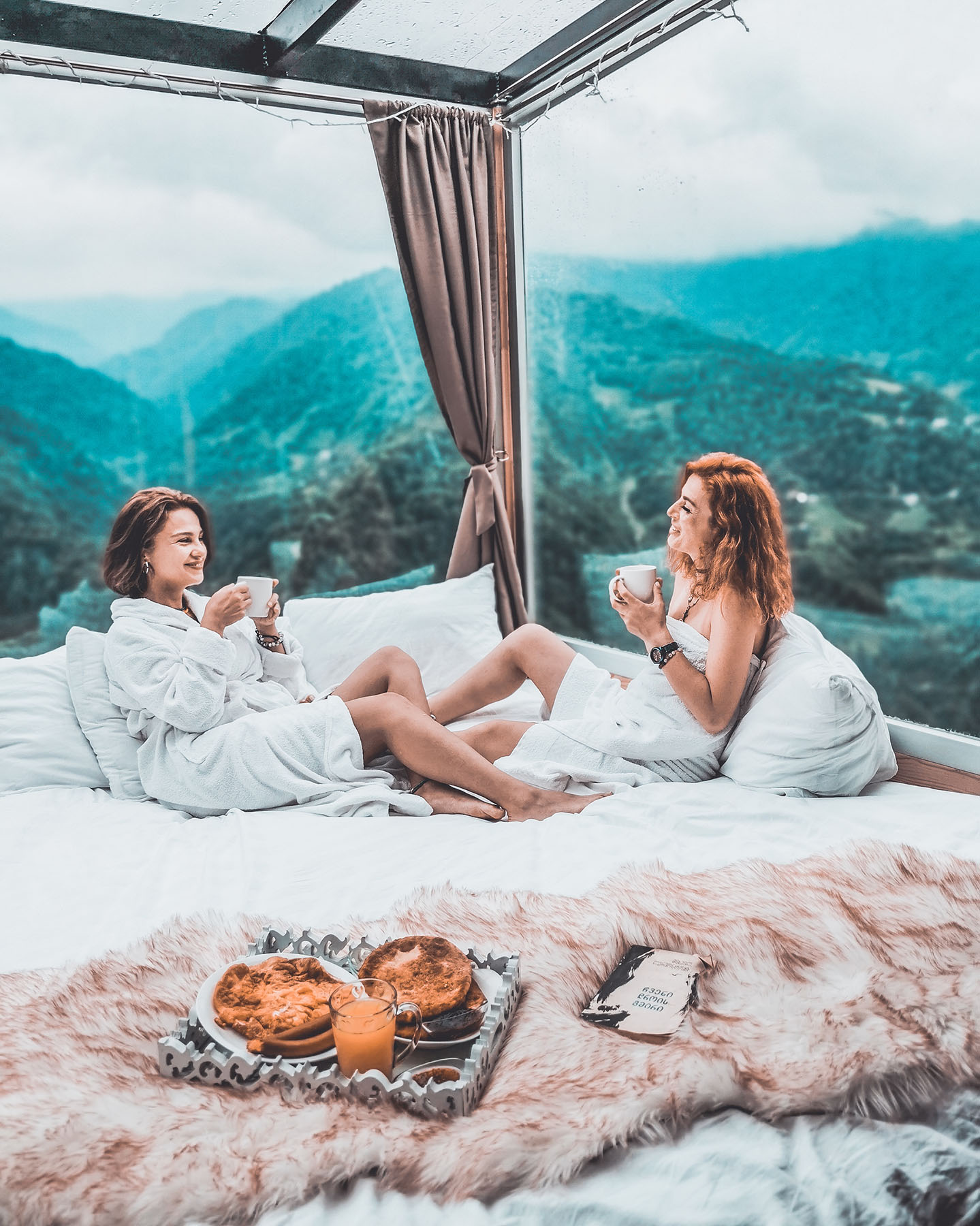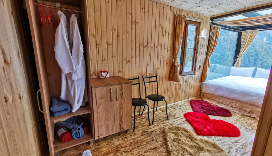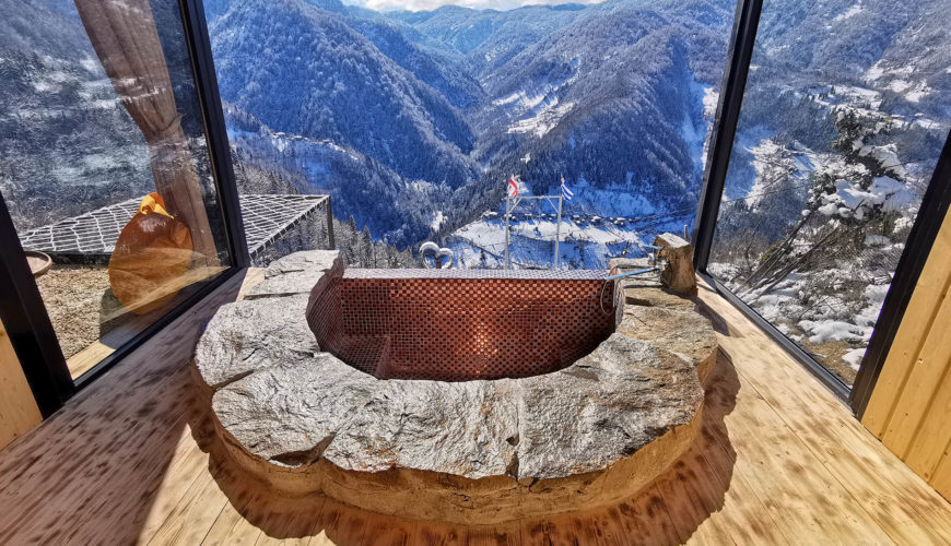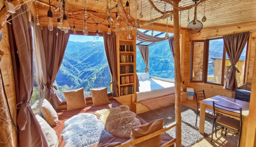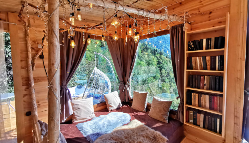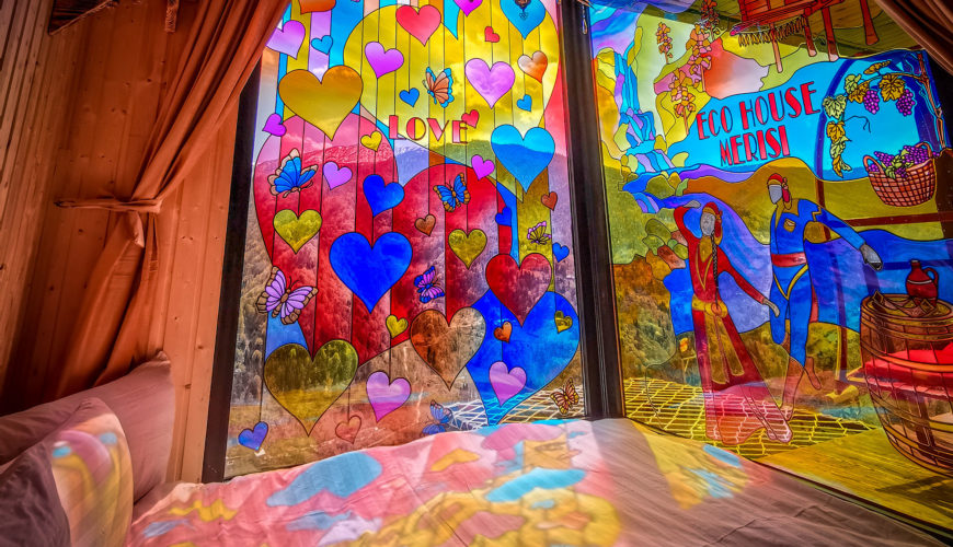 Um projeto inovador na área do turismo onde as acomodações são cabanas boutique com diferentes designs projetados pelos próprios idealizadores do local. Os quartos são de vidro na encosta da montanha com bela vista panorâmica, jacuzzi e rede suspensa na varanda. As casas estão localizadas a 850 metros de altura na pitoresca vila de Merisi, a 50 km de Batumi. Além do um clima gostoso da montanha, também há águas minerais ao redor, levando a experiência à um nível que mistura hospedagem criativa com bem-estar. Há também um enorme balanço de 6 metros em uma encosta íngreme que se tornou outra marca registrada do hotel.