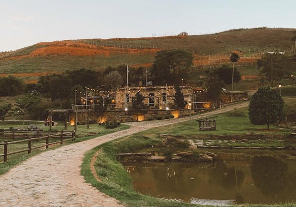 Para banhos ou para recarregar os celulares é preciso se direcionar para a casa da fazenda. Lá estão as áreas comuns como sala com lareira, um jardim, spas privativos ao ar livre, uma sala de massagens e uma piscina aberta no verão.