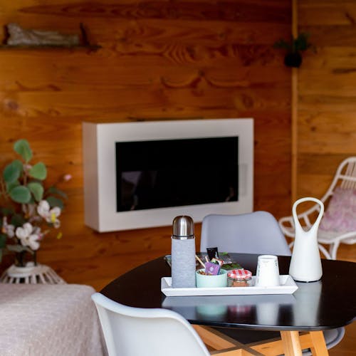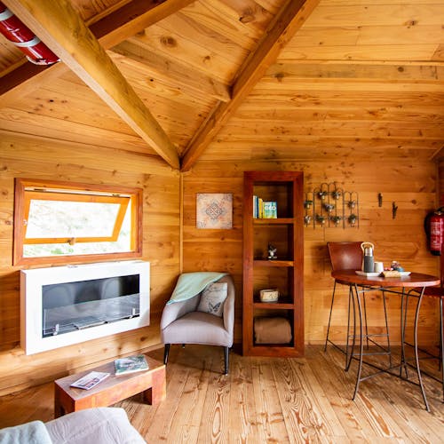 Lareira ecológica: Lareira montada na parede para jantares e noites de inverno. Ele usa bioetanol como combustível. É um tipo de álcool orgânico (vem da fermentação da beterraba e da cana-de-açúcar).