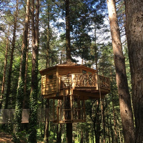 Existem alguns hotéis como esse na Espanha, mas o Cabanes Als Arbres foi o primeiro, sendo o original! Além de tudo, é muito concorrido. O hotel é especializado em acomodações de casas na árvore e fica perto de Barcelona.