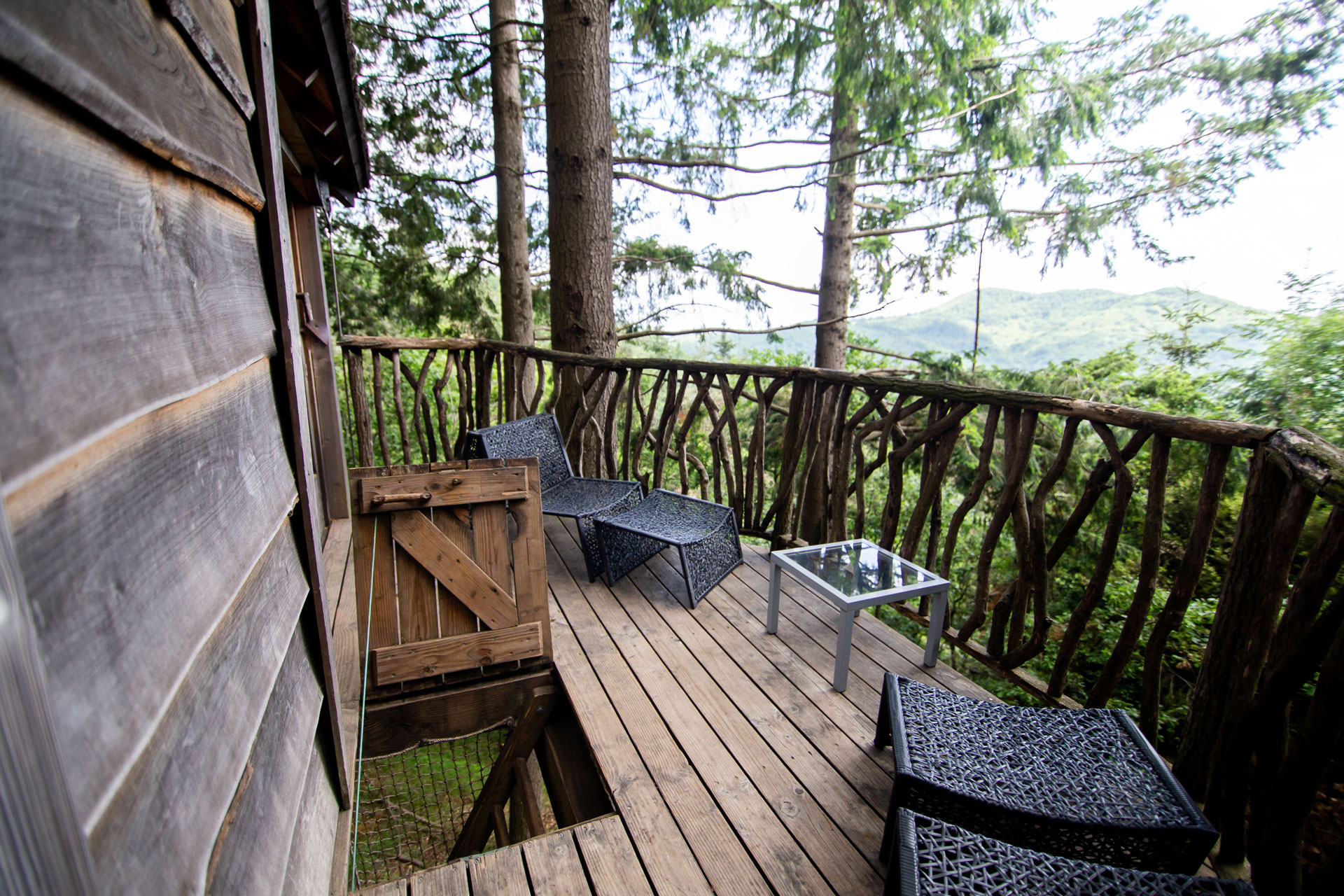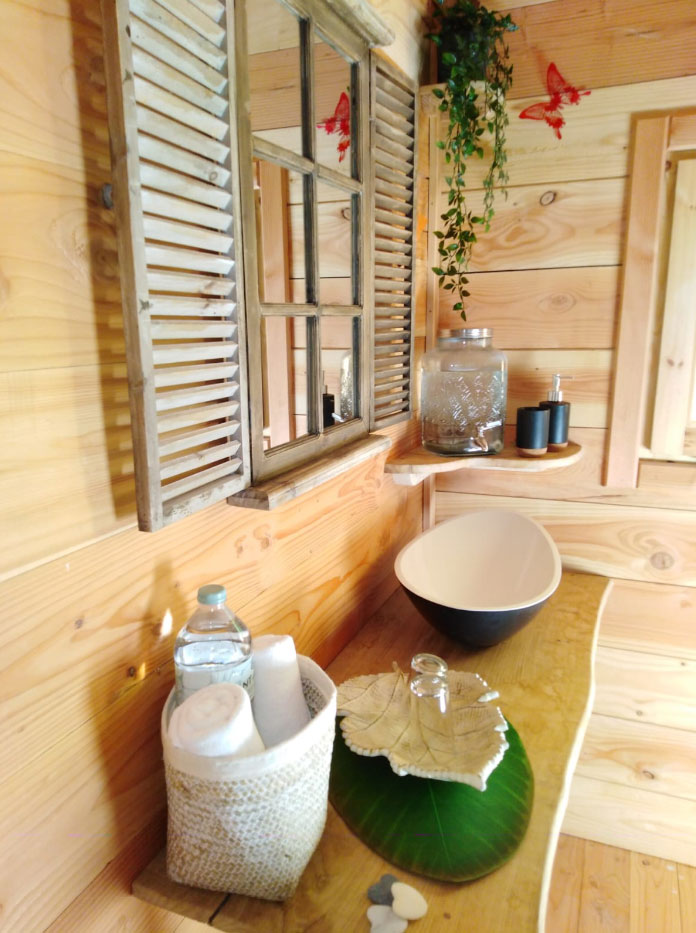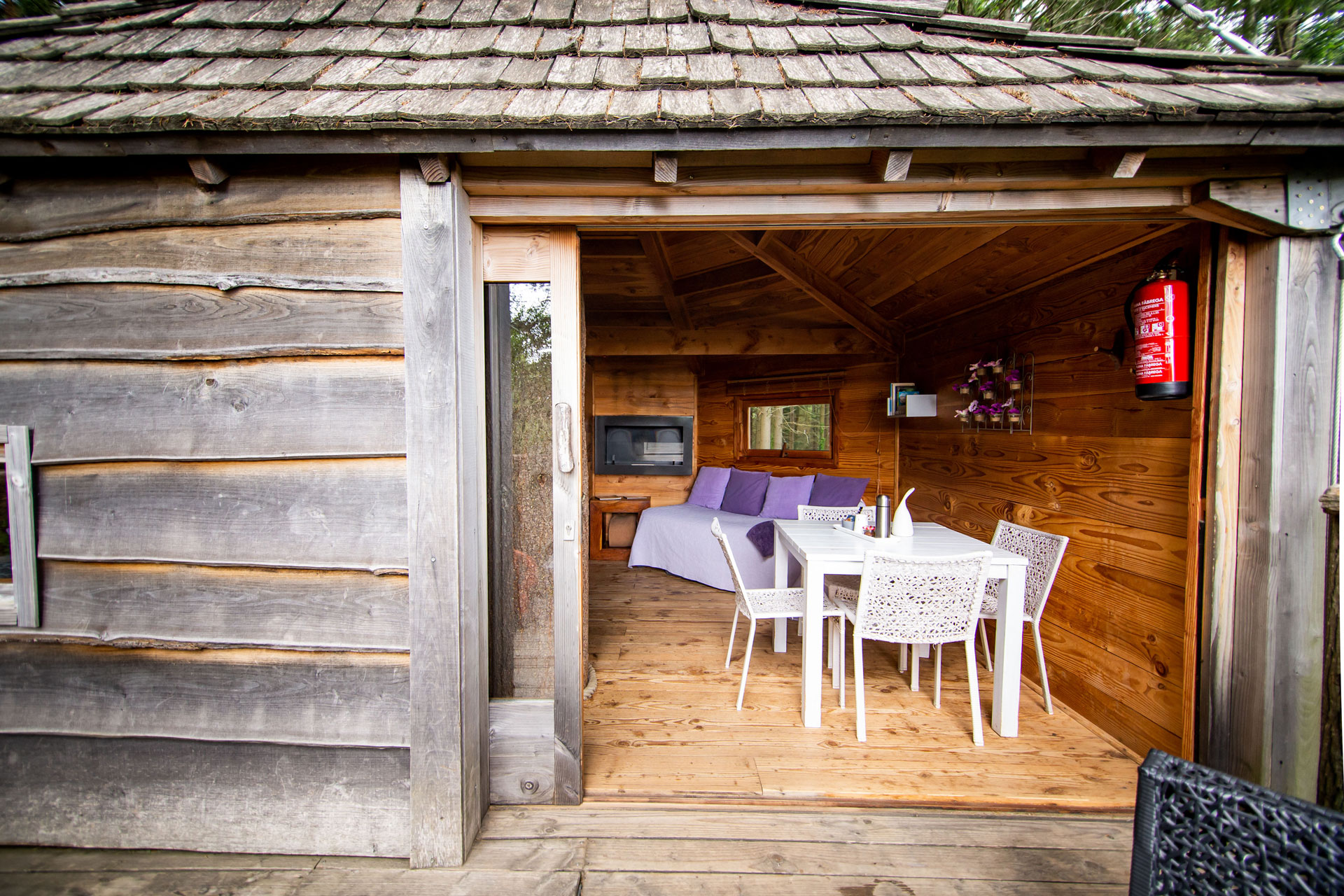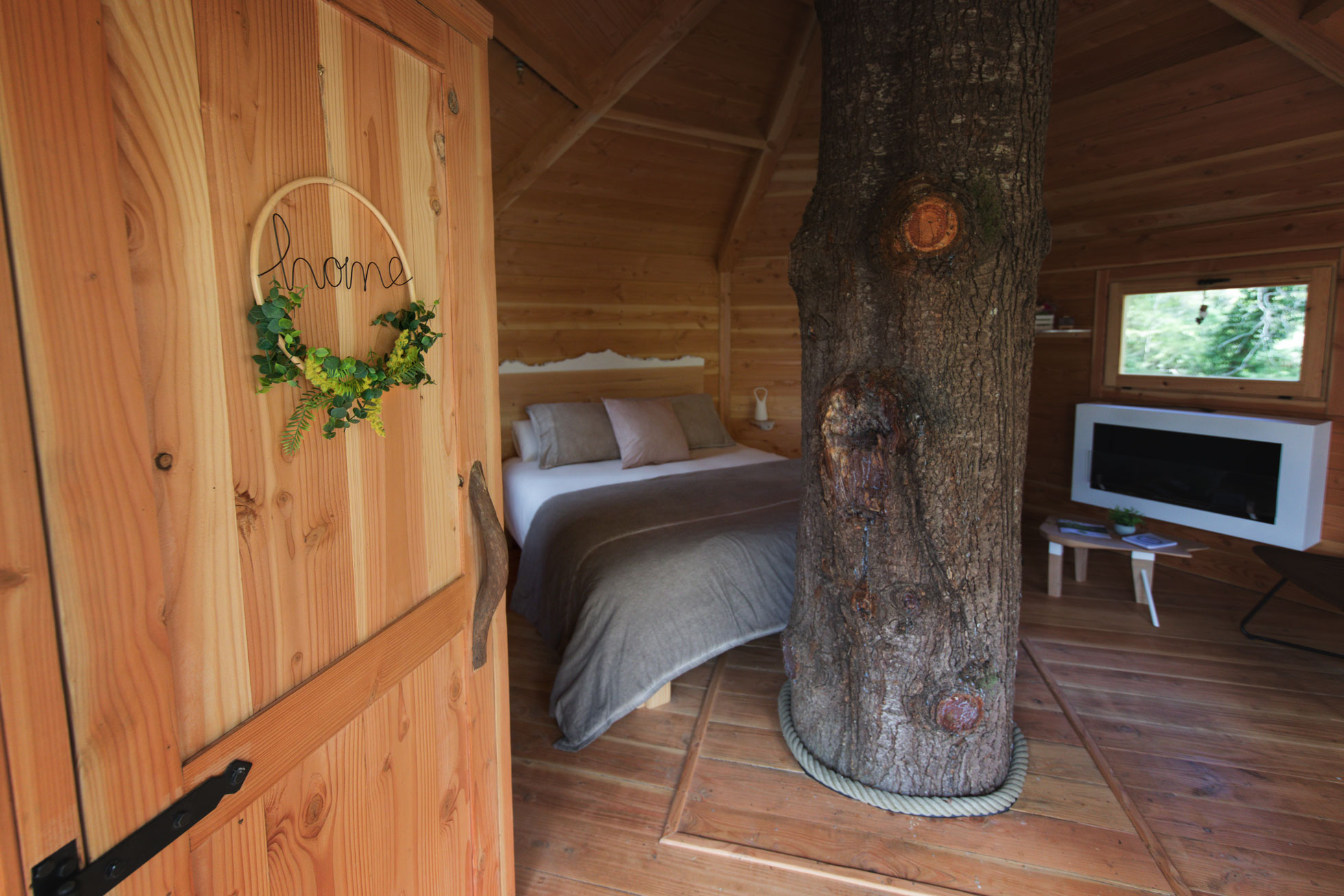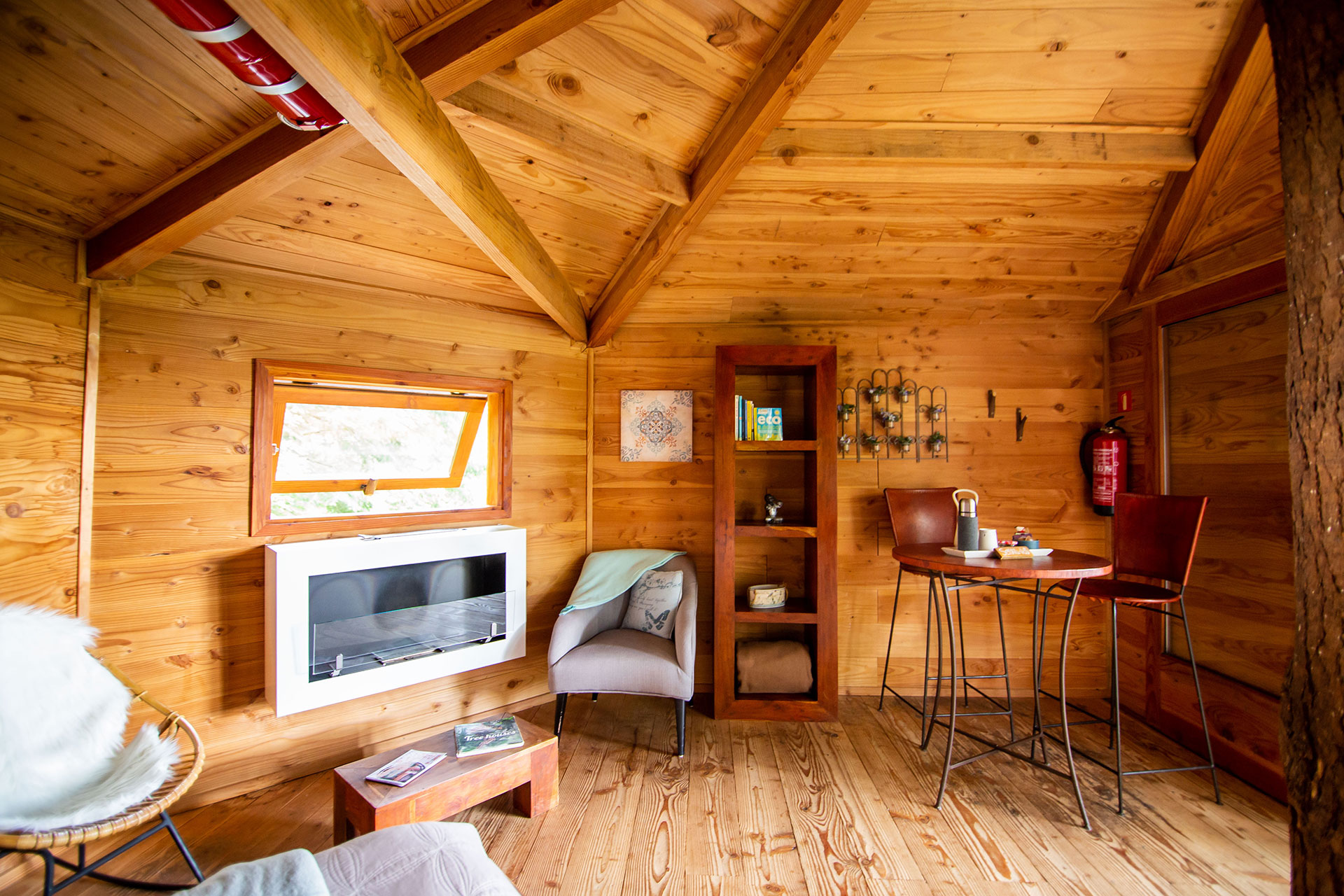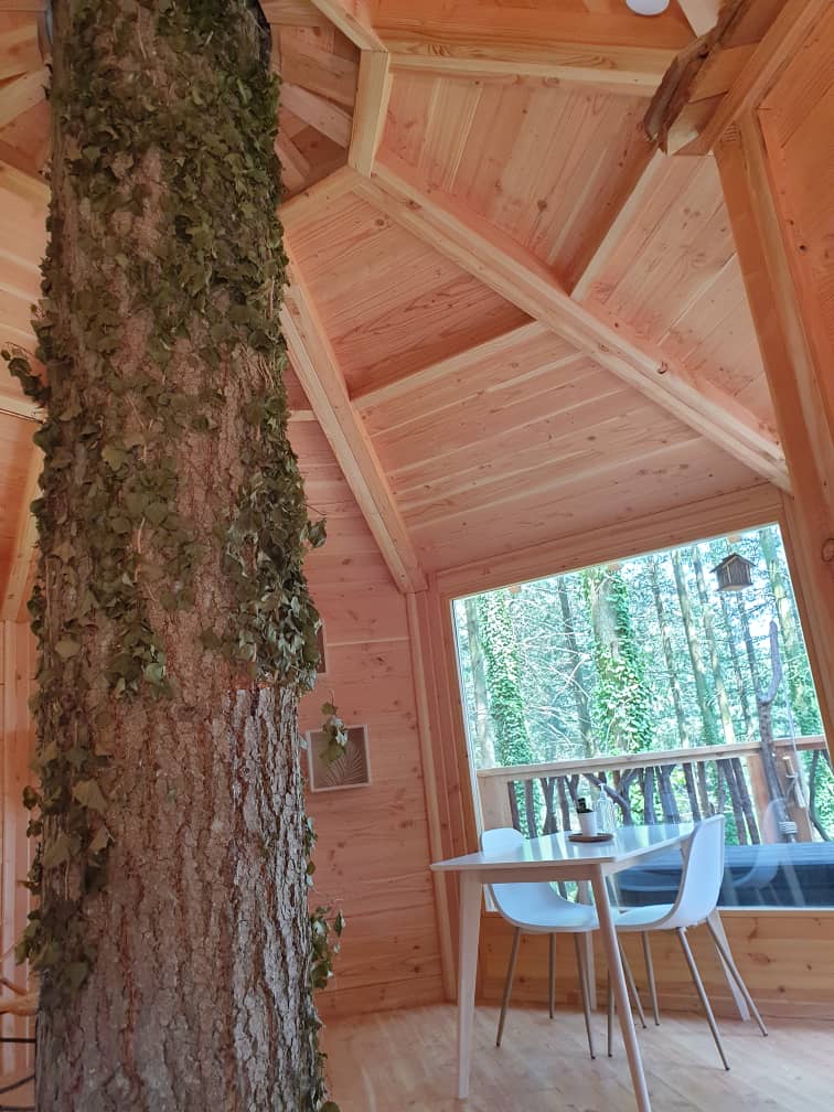 As cabanas ficam imersas na incrível floresta de Sant Hilari Sacalm. São 16 tipos de casas, que acomodam de 2 a 4 hóspedes e ficam de 3 a 15 metros de altura do chão! Adaptadas ao tamanho da árvore que as sustenta, as cabines têm formato octogonal e área média de 30 m2. Os terraços tem 10 m2 e oferece um espaço de descanso e relaxamento, para aproveitar ao máximo o ambiente da floresta com uma vista espetacular. É possível acessar a casa por meio de uma ponte ou escada vertical.