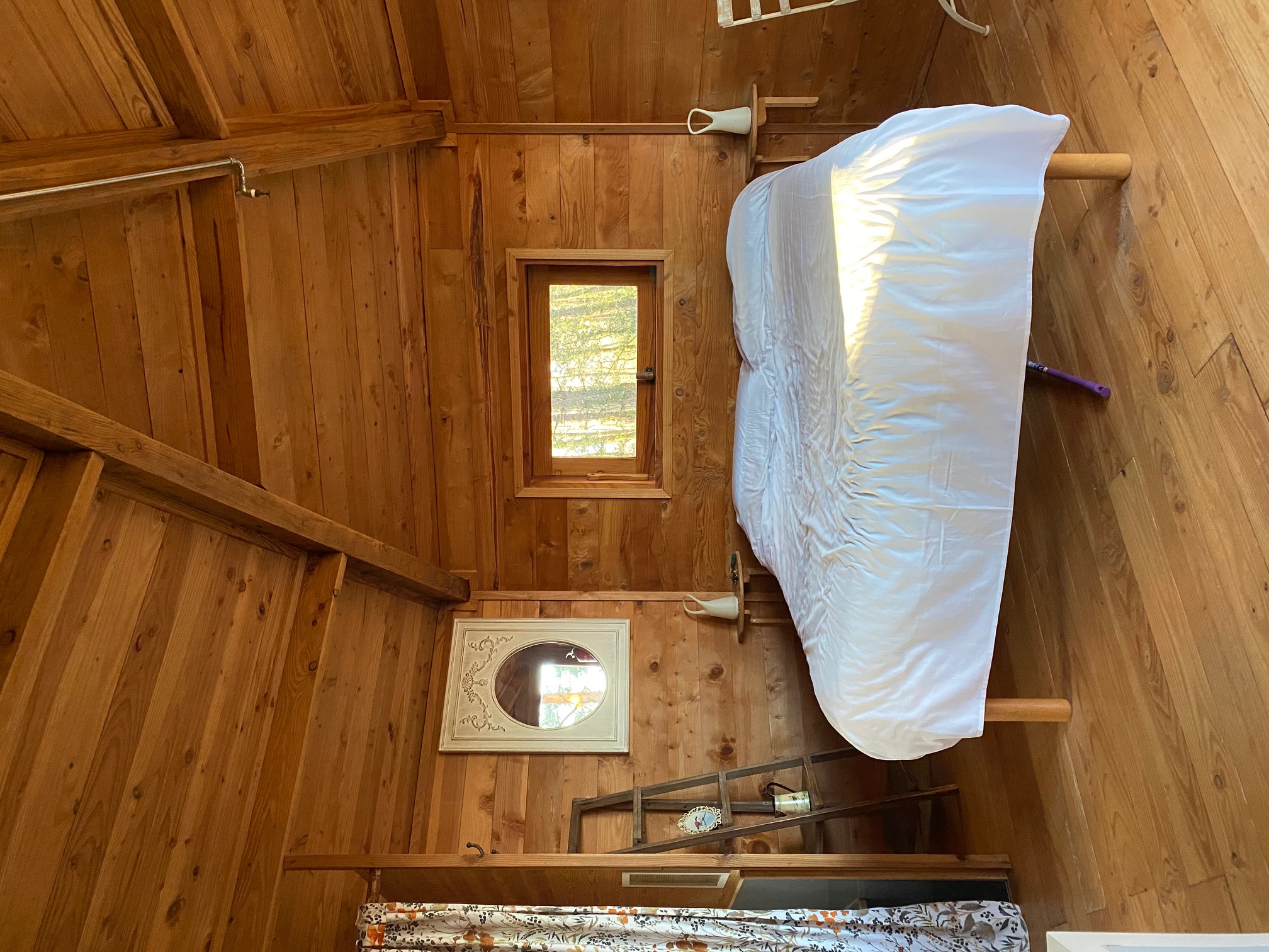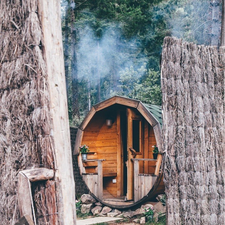 Ao chegar, os hóspedes estacionam entre as árvores próximo à casa da fazenda (apoio central), que possui mais de sete séculos de história. Após receberem as informações na recepção, seguem para sua acomodação, caminhando pela mata e guiados por placas. Cada cabana tem sua própria vista e decoração. Todas com pia, um banheiro ecológico seco e uma lareira montada na parede para jantares e noites de inverno. O café da manhã é servido em uma cesta pendurada em uma roldana.