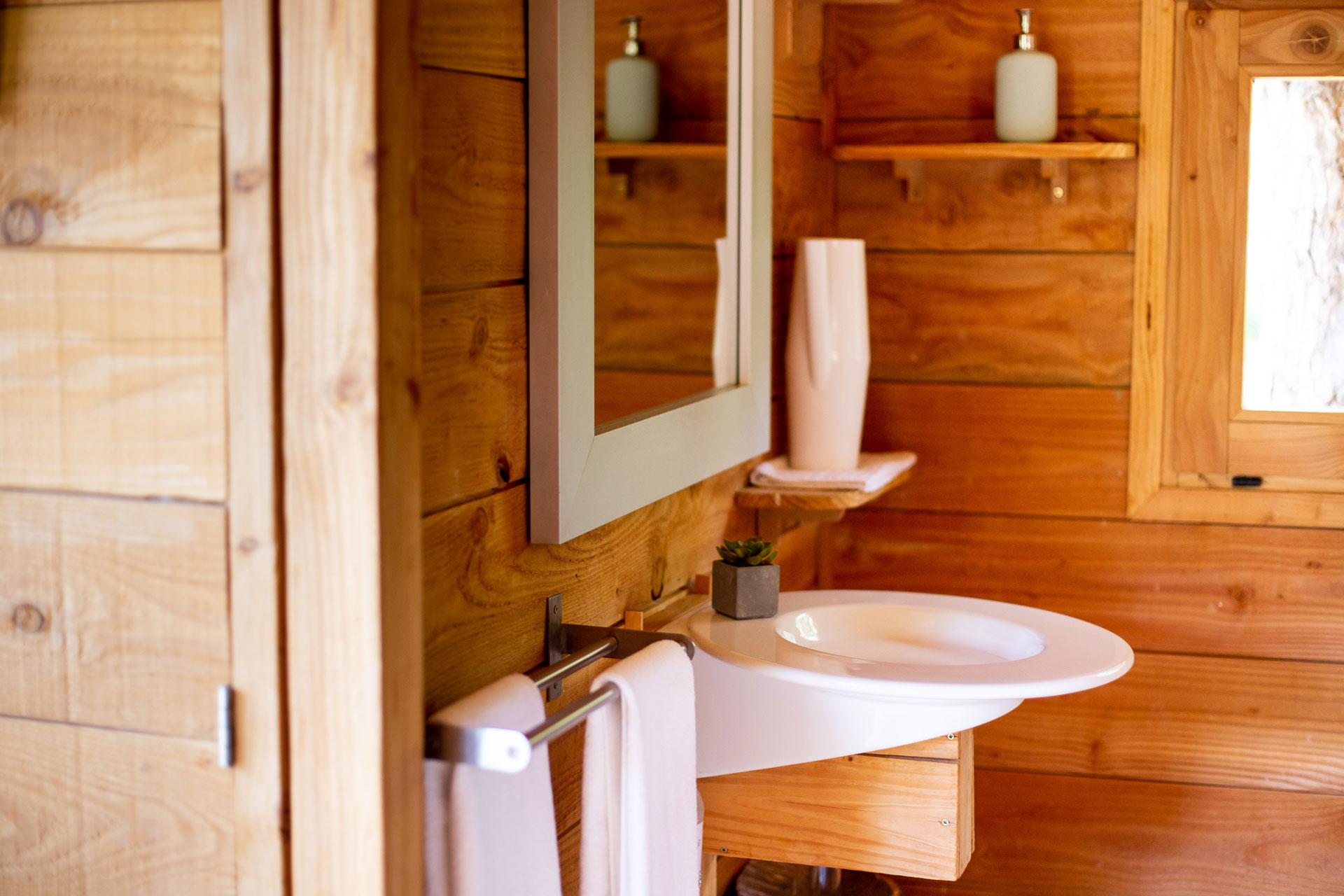 Para banhos ou para recarregar os celulares é preciso se direcionar para a casa da fazenda. Lá estão as áreas comuns como sala com lareira, um jardim, spas privativos ao ar livre, uma sala de massagens e uma piscina aberta no verão.