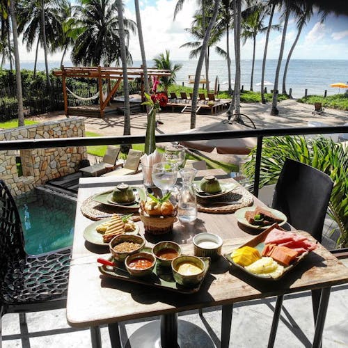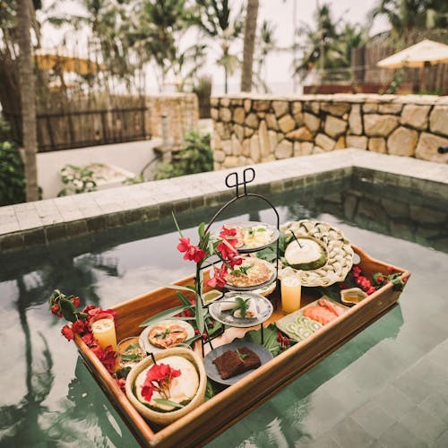 - ☕ Café da manhã flutuante na piscina do quarto
