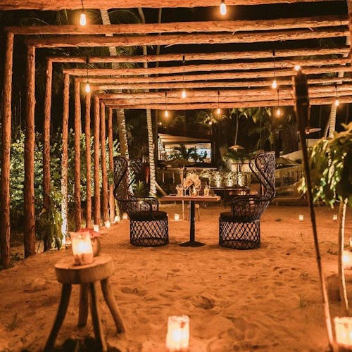 - 🕯️ Jantar romântico à luz de velas pé na areia