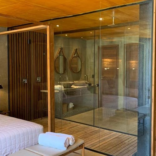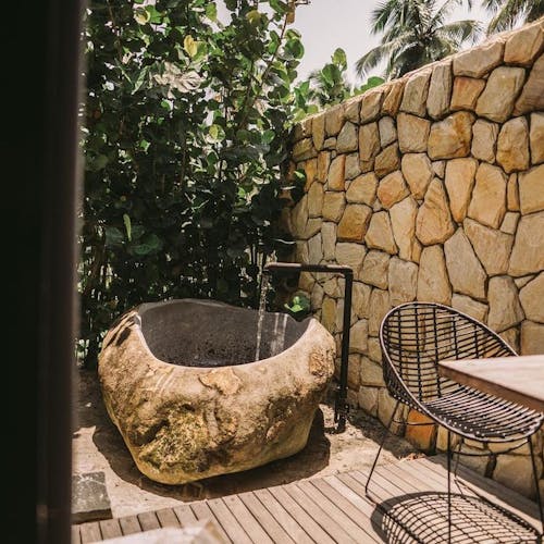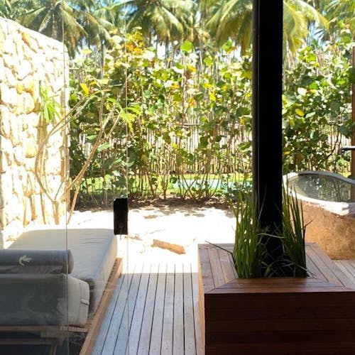 O grande destaque são as suítes com uma piscina privativa no rooftop e banheiras de pedras - aproveite a vista do mar enquanto aproveita a piscina só sua. Outro ponto forte do hotel, é que por ser menor e oferecer os diferenciais individuais para cada hóspede, se torna um destino de bem-estar para quem busca relaxar e desestressar.