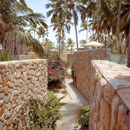 Caminhos revestidos por pedras naturais levam os hóspedes diretamente à uma das praias mais bonitas do Nordeste.