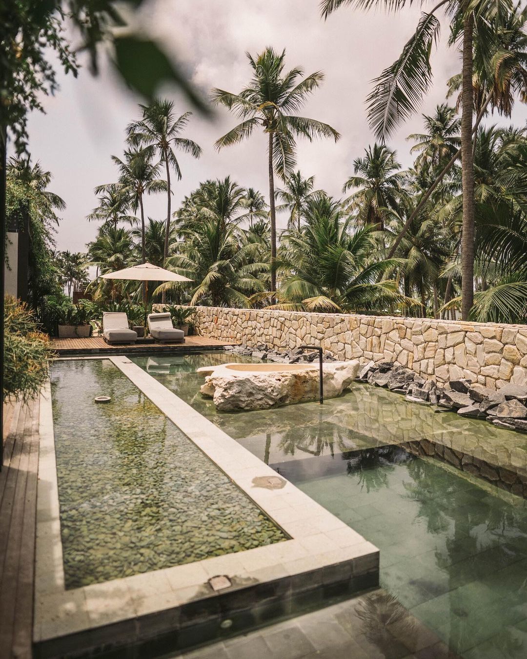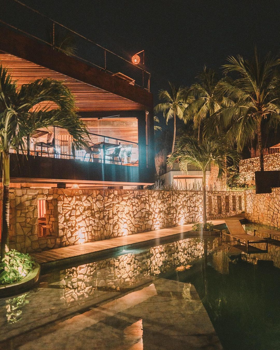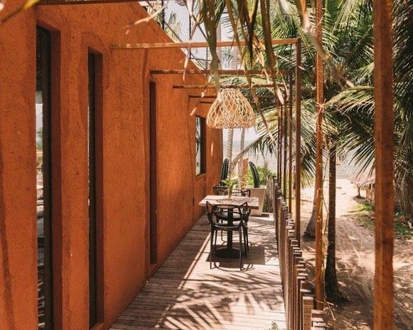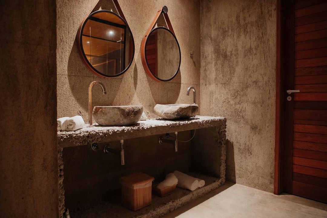 São dois tipos de suítes para 2 hóspedes: Bangalô Frente Mar e Bangalô Vista Mar, ambas de 75,35m2. O primeiro é mais exclusivo com apenas 2 bangalôs e o segundo com 5. Todos com cama king, rooftop individual, varanda, máquina de café, piscinas privativas e vista pro mar.