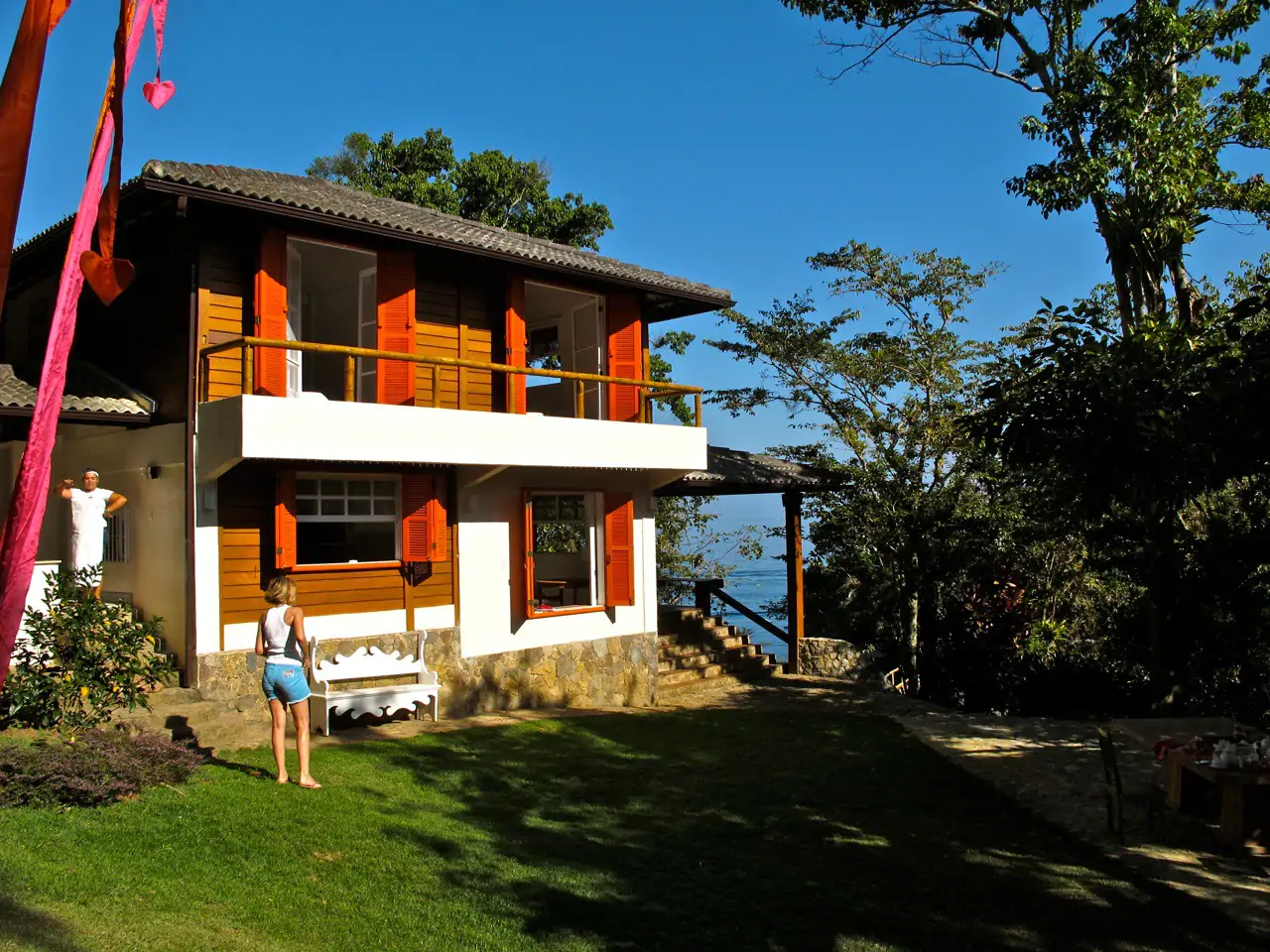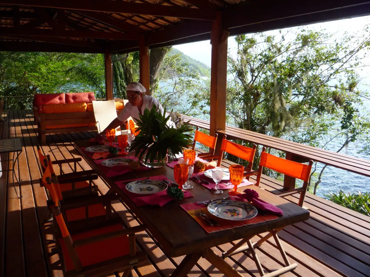 As refeições podem ser apreciadas ao ar livre sob uma bela árvore de ipê ou à beira-mar; além de dentro de casa ou na varanda com vista para o mar. Uma equipe do local cuida dos hóspedes durante toda estadia.