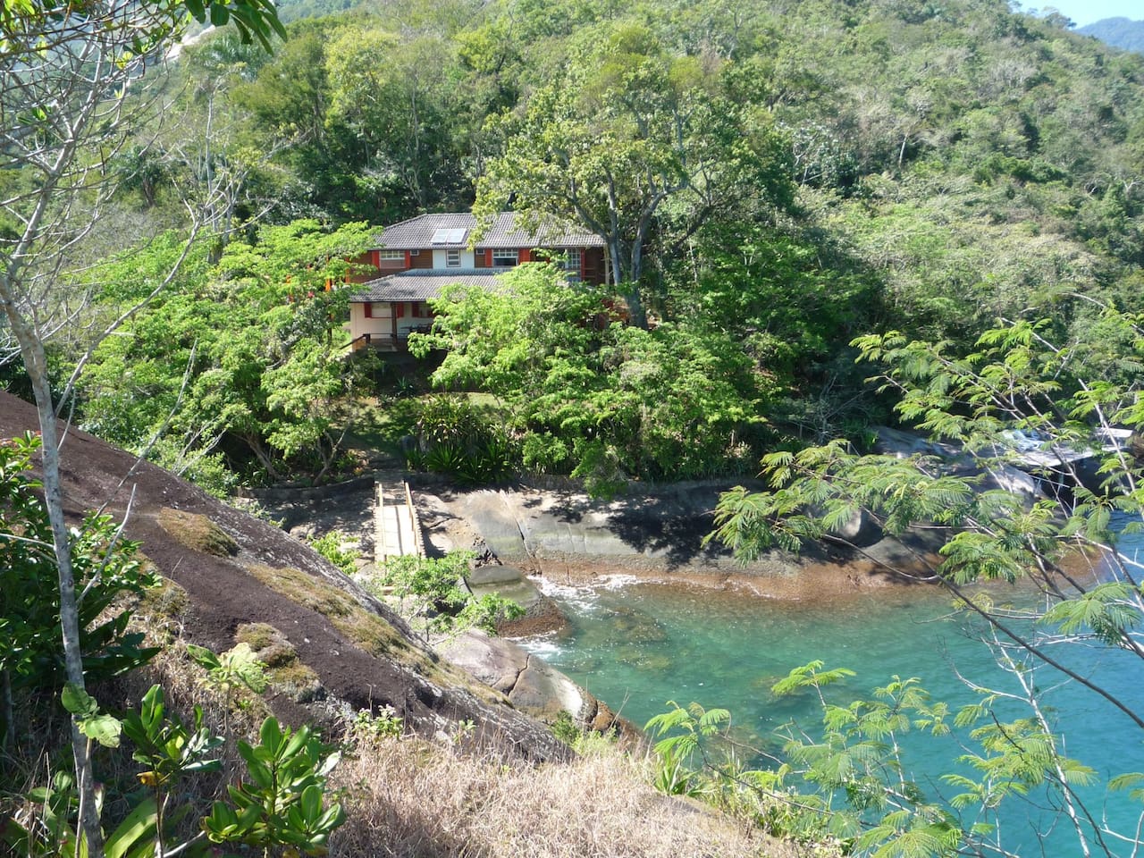 A ilha fica em Ilha Grande no Rio de Janeiro, a propriedade consiste em um pedaço de ilha grande conectado por ponte a uma pequena ilha particular. Há duas casas na propriedade, uma de cada lado da ponte. O silêncio e a privacidade são de longe o seu maior patrimônio. A propriedade é de um designer italiano e a decoração e arquitetura reflete isso. Até 14 pessoas podem ficar hospedadas ali.