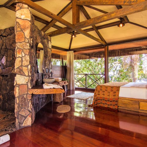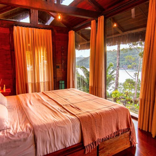 A ilha é como um refúgio e o modelo de hospedagem é all inclusive para um grupo de duas a quatro pessoas, ou até oito hóspedes expandindo para os bangalôs com vista para o mar.