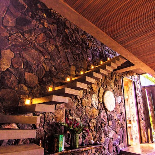 A experiência já começa do alto ao avistar bolsões intocados de areia branca e florestas tropicais exuberantes abraçando a costa íngreme mantendo a ilha e a casa envolta em um ar de mistério.