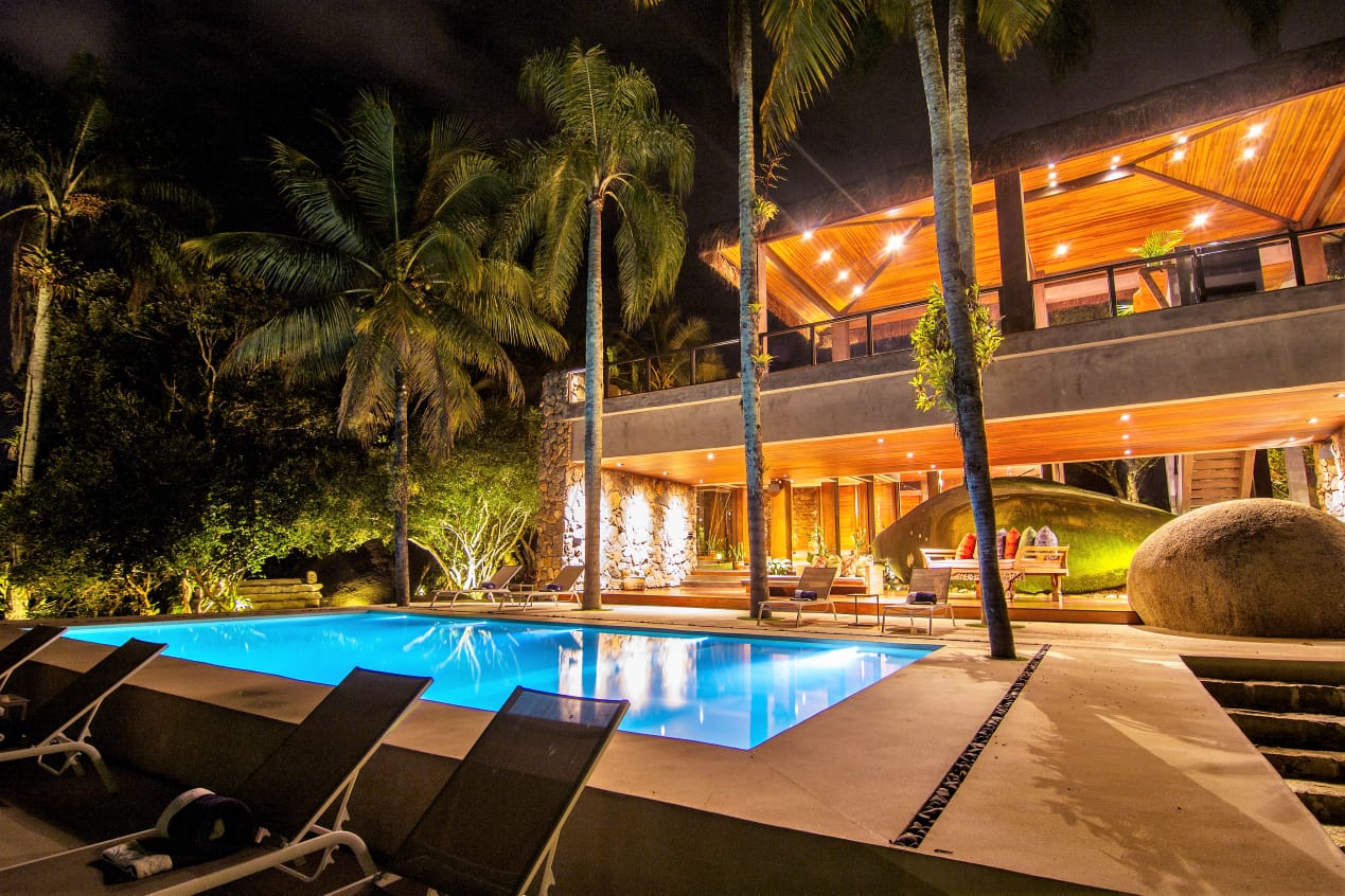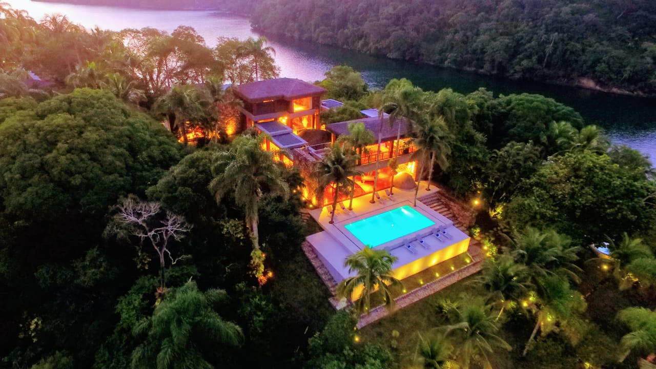 Quartos espaçosos, cozinha moderna, decoração de primeira linha, deck externo com vista panorâmica onde se pratica yoga e se relaxa com boas massagens. Essas são apenas algumas características que você vai encontrar na propriedade localizada em uma ilha privada de Angra dos Reis.