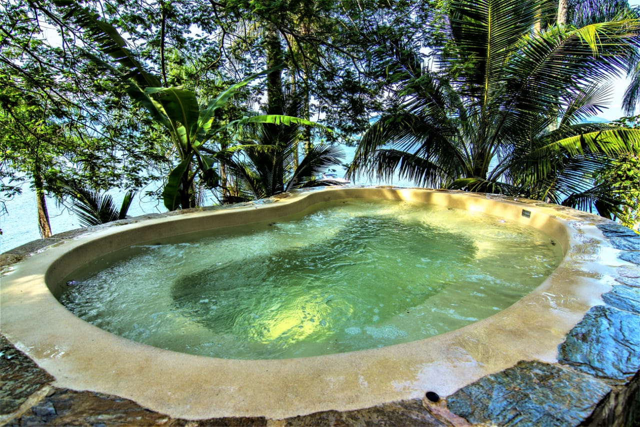Há um playground tropical com sua própria praia particular, piscina, banheira de hidromassagem com vista e uma área social com tamanho e requinte de cair o queixo.