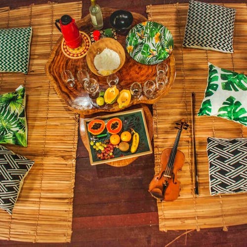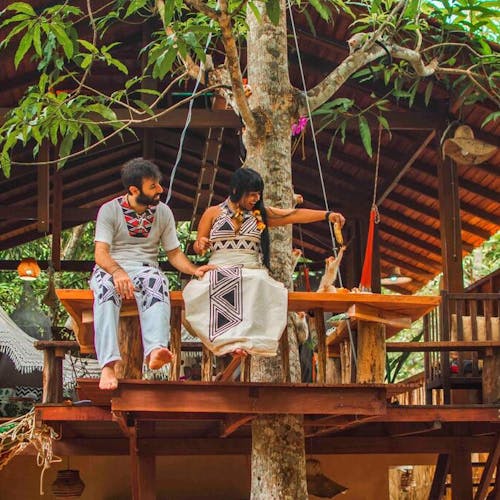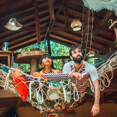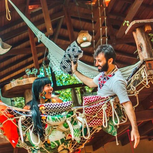Os anfitriões dessa experiência são totalmente envolvidos com arte: ele é músico e violinista da Orquestra Sinfônica Brasileira. Ela é We'e'ena Tikuna, indígena do Alto Rio Solimões.