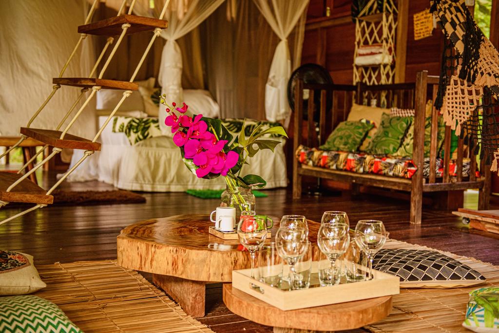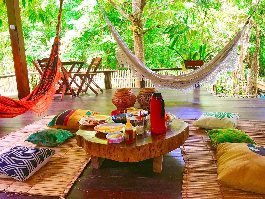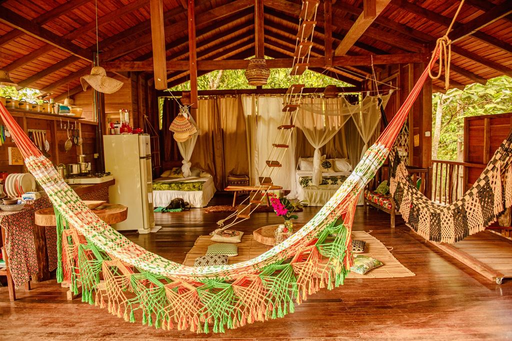 Uma casa na árvore diferente e cultural sem estar necessariamente nas alturas. Os proprietários recebem os hóspedes que terão a experiência de contato abundante com a natureza. A 50 metros da praia e com um terraço ao ar livre.