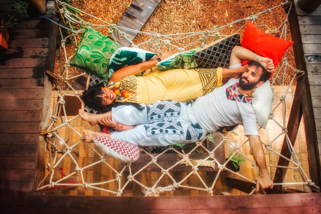 Os anfitriões dessa experiência são totalmente envolvidos com arte: ele é músico e violinista da Orquestra Sinfônica Brasileira. Ela é We'e'ena Tikuna, indígena do Alto Rio Solimões.