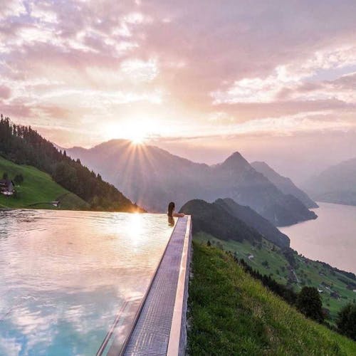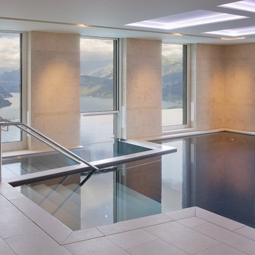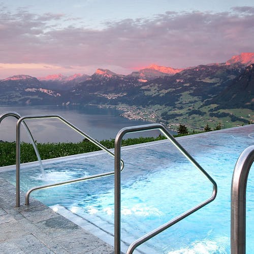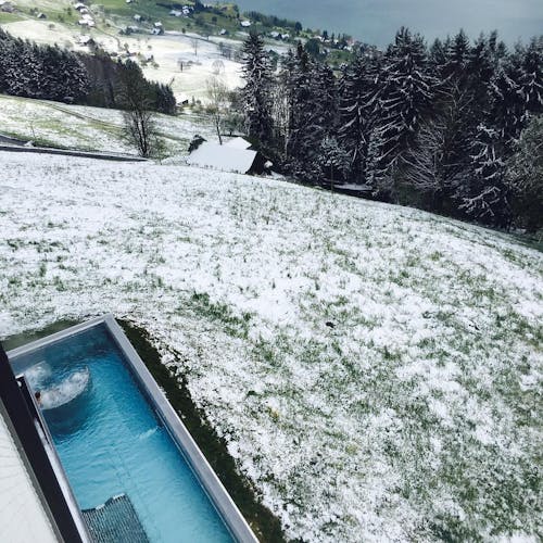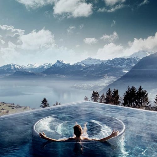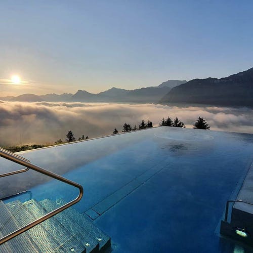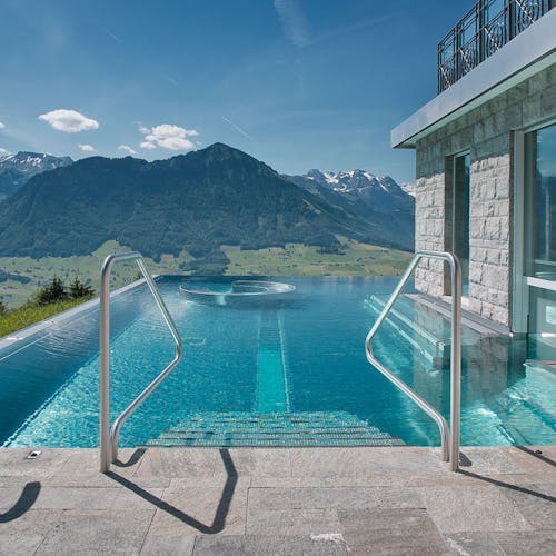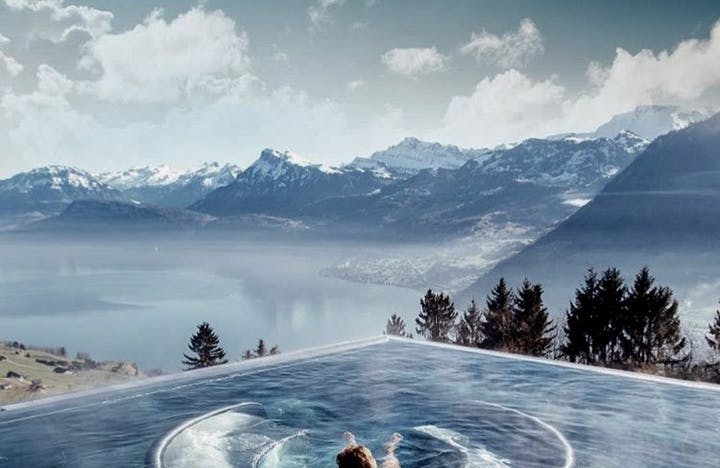 Localizada no hotel Villa Honegg construído no início do século XX a cerca de 1000m de altitude, essa é uma experiência à parte e especial quando o assunto é piscina.