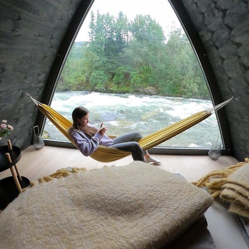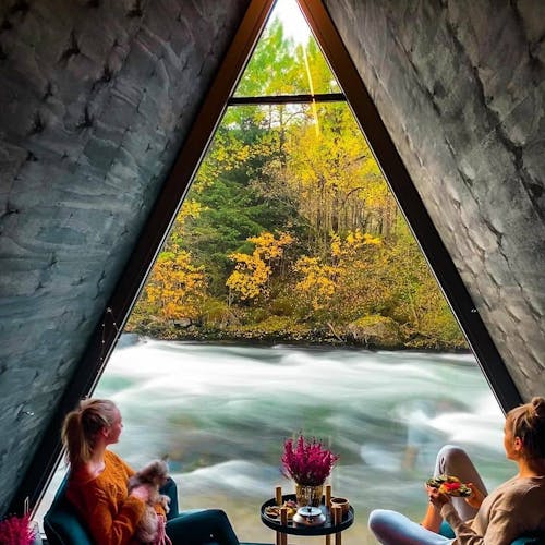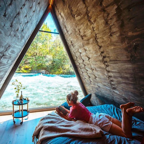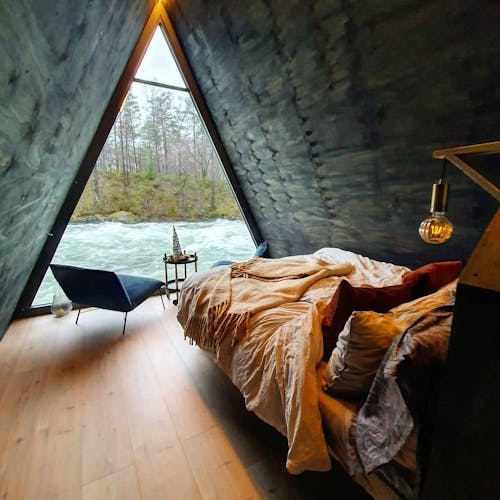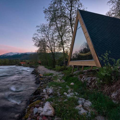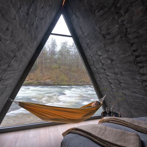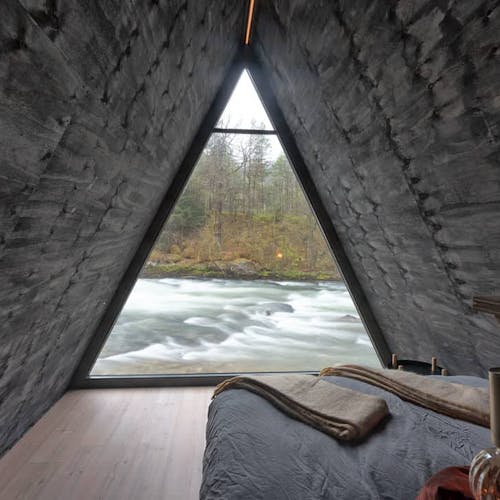 Uma micro cabana triângulo de frente pro rio: A experiência de dormir em um local cinematográfico e quase secreto na Noruega
