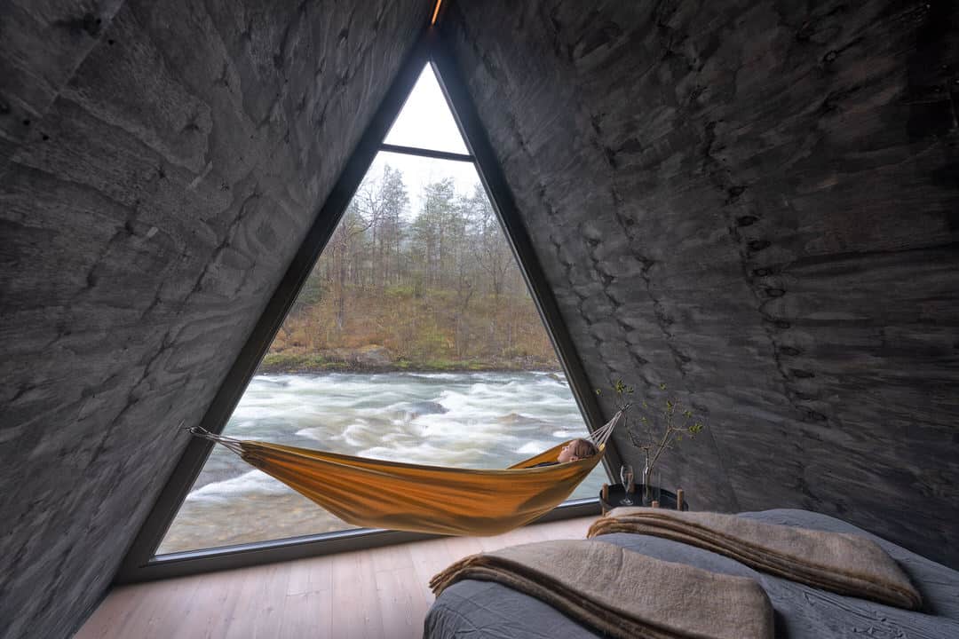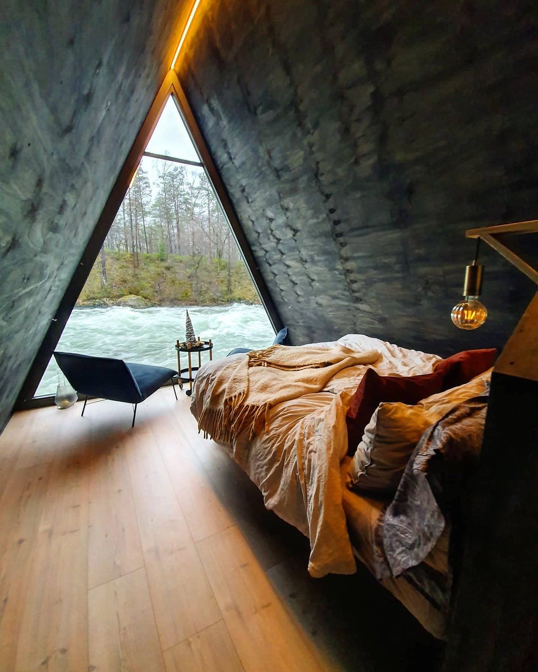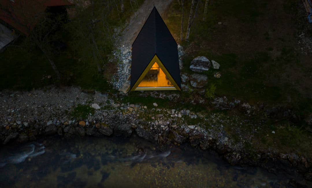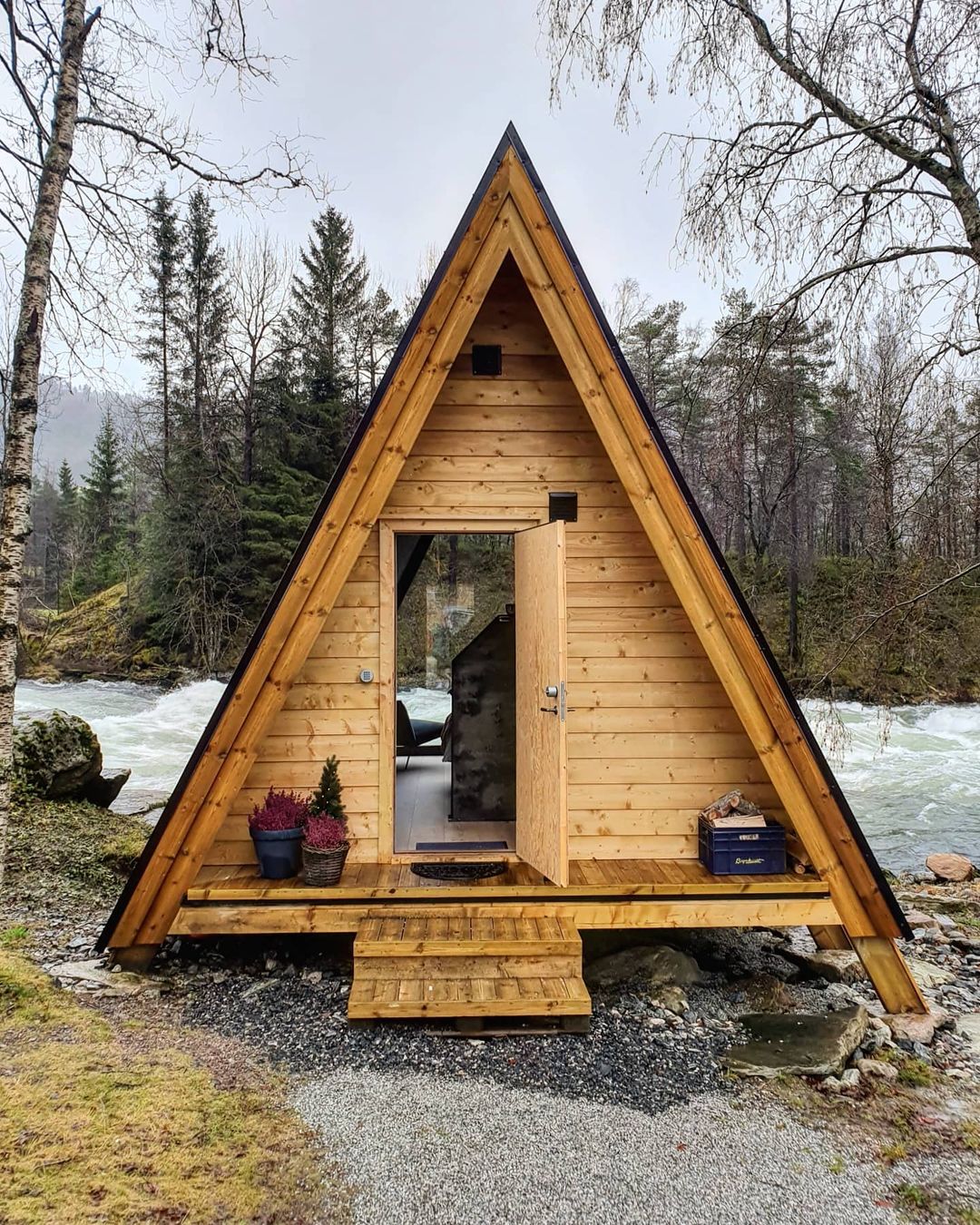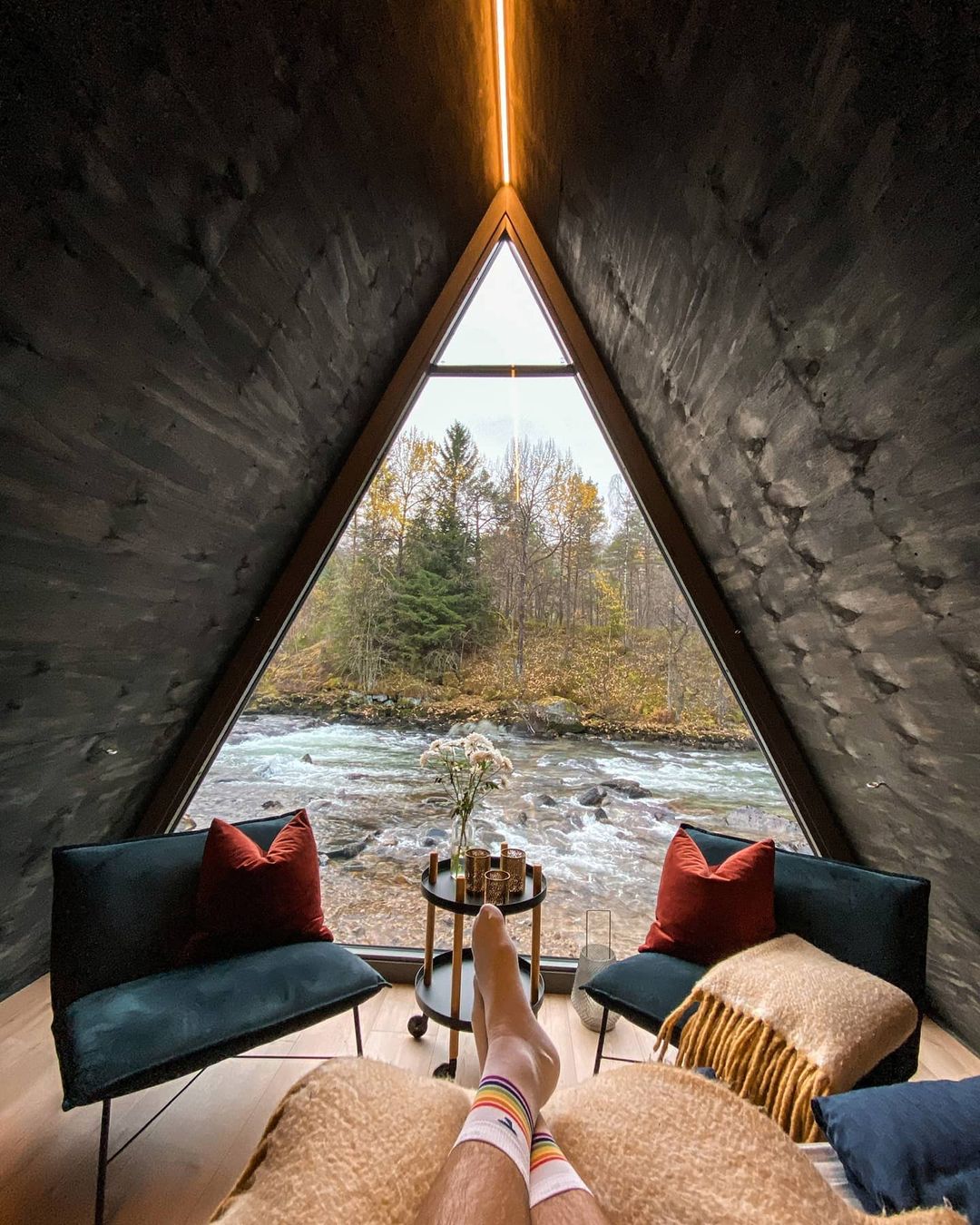 Uma micro cabana triângulo de frente pro rio: A experiência de dormir em um local cinematográfico e quase secreto na Noruega