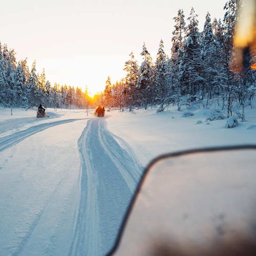 - PASSEIO DE MOTO DE NEVE: É a forma mais rápida e excitante de dar uma volta pela natureza na Lapônia. Nesse passeio se transita entre as florestas e é possível ver uma das paisagens mais incríveis da região. A duração do passeio é de duas horas e tem uma pausa para o café ao ar livre. A opção de quatro horas inclui também um almoço a céu aberto. Também é possível fazer essa aventura à noite.