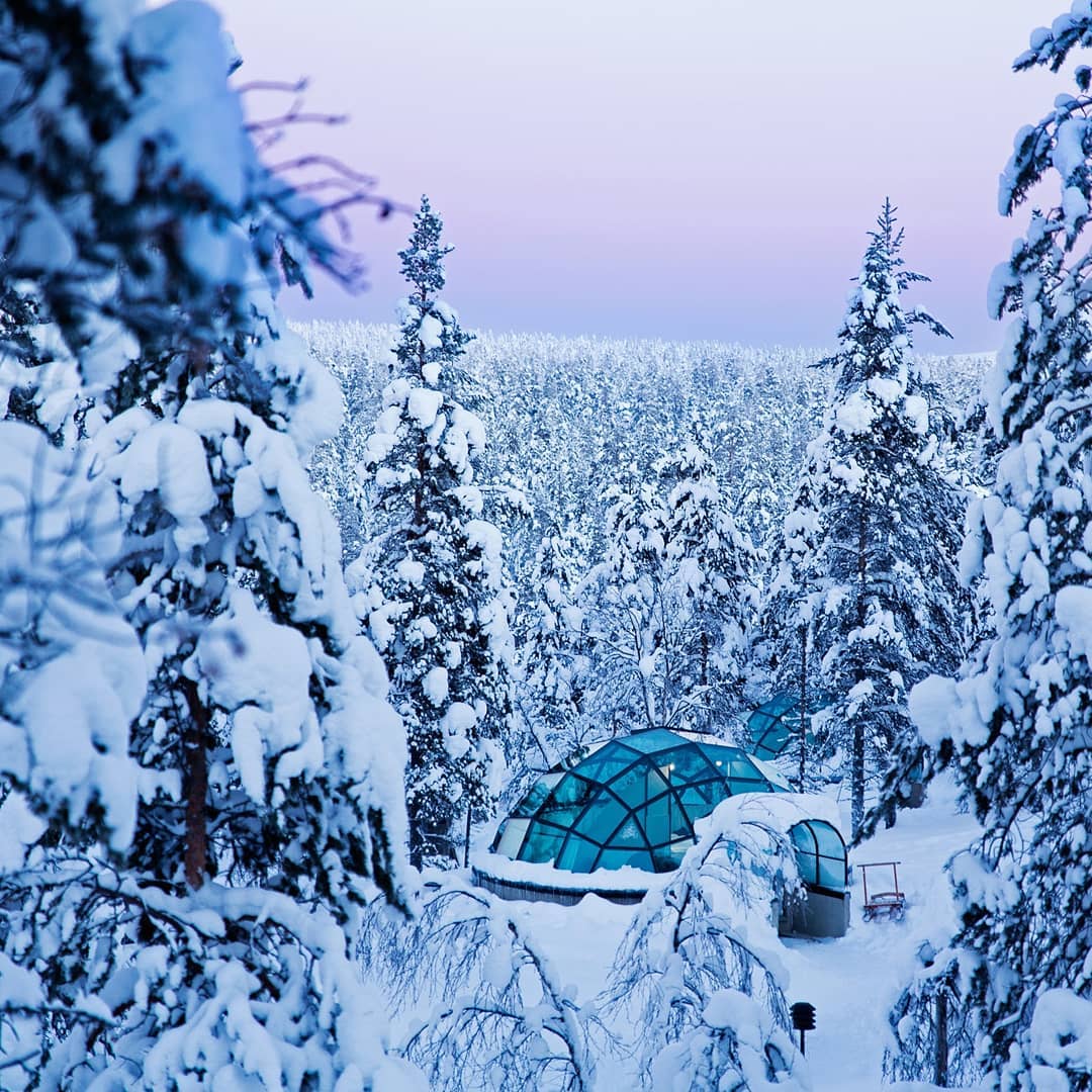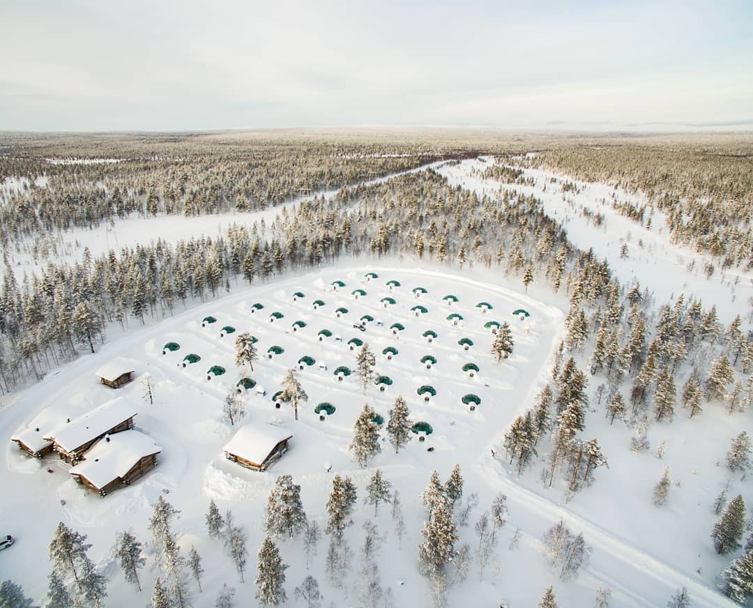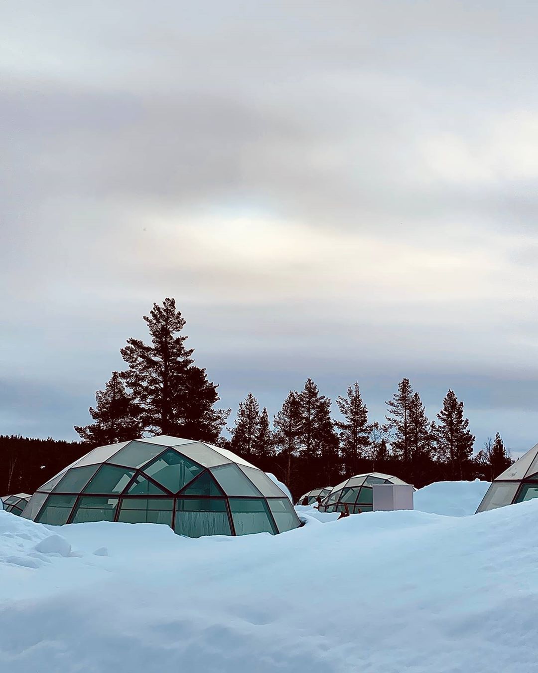Neste ambiente de natureza selvagem ainda é possível ter a experiência maravilhosa de observar a aurora boreal sem precisar sair de dentro da cabana, apreciando esse espetáculo deitado na sua cama. Além disso, dormir sob o céu cintilando será outra vivência mágica junto da pintura branca da neve. As opções de iglu funcionam tanto para casais quanto para pequenos grupos, são equipados com banheiro mas sauna e chuveiro são em um edifício separado. A reserva funciona durante toda a temporada da aurora, começando por volta de 20 de agosto indo até final de abril.