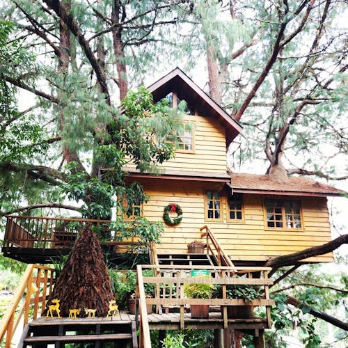 Casa na árvore: Outra atração concorrida é a casa na árvore, uma simpática casinha de madeira construída entre as árvores inteira mobiliada, de onde os visitantes podem ter uma outra visão dos jardins