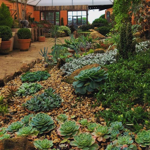 - Jardim Árido: plantas suculentas e cactos que são conhecidas por serem muito resistentes à seca de longa duração