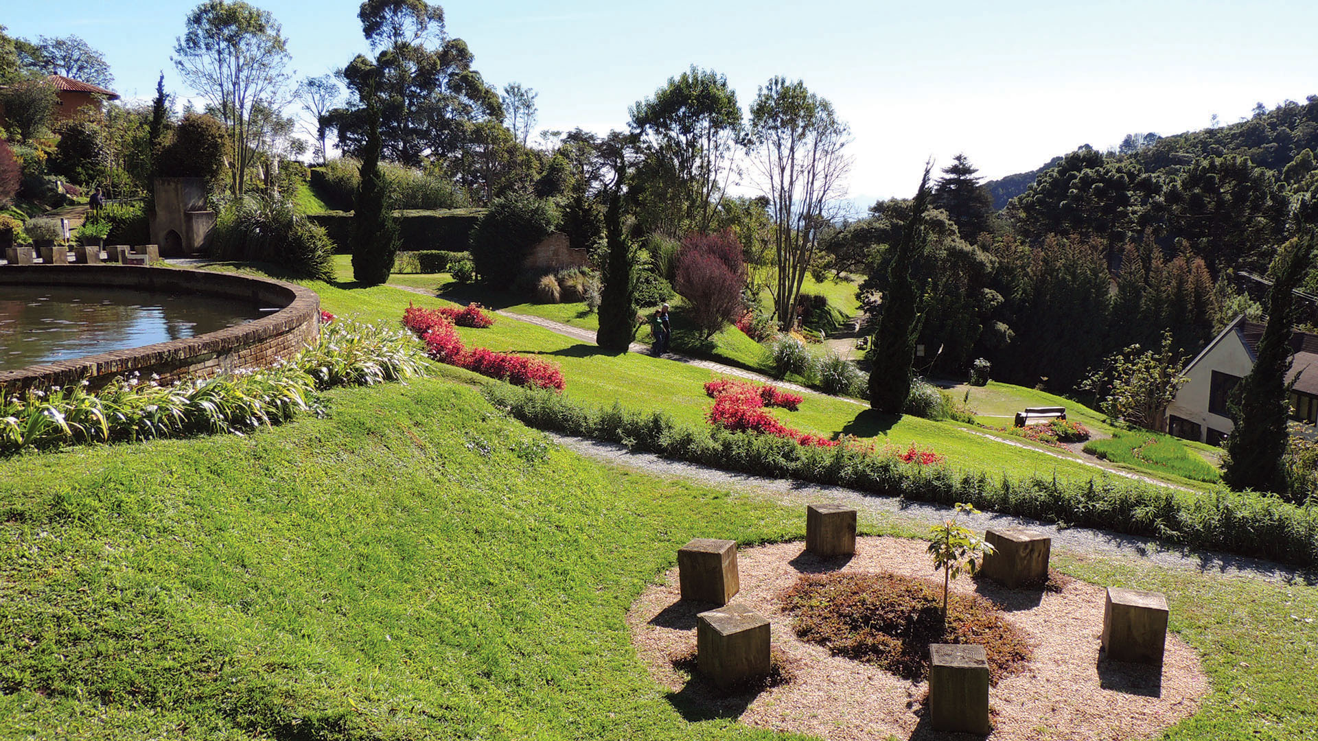 - Jardim de Raízes: trata-se de um arranjo paisagístico feito com cepos (toco) de árvores mortas