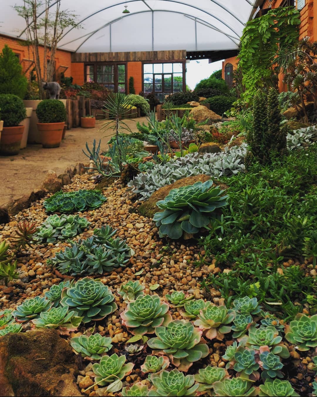 - Jardim Árido: plantas suculentas e cactos que são conhecidas por serem muito resistentes à seca de longa duração